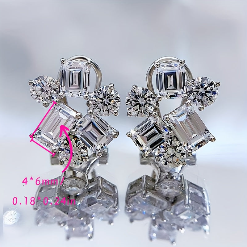 Sterling Silver Stud Earrings with Synthetic Gemstones Cluster Design for Women