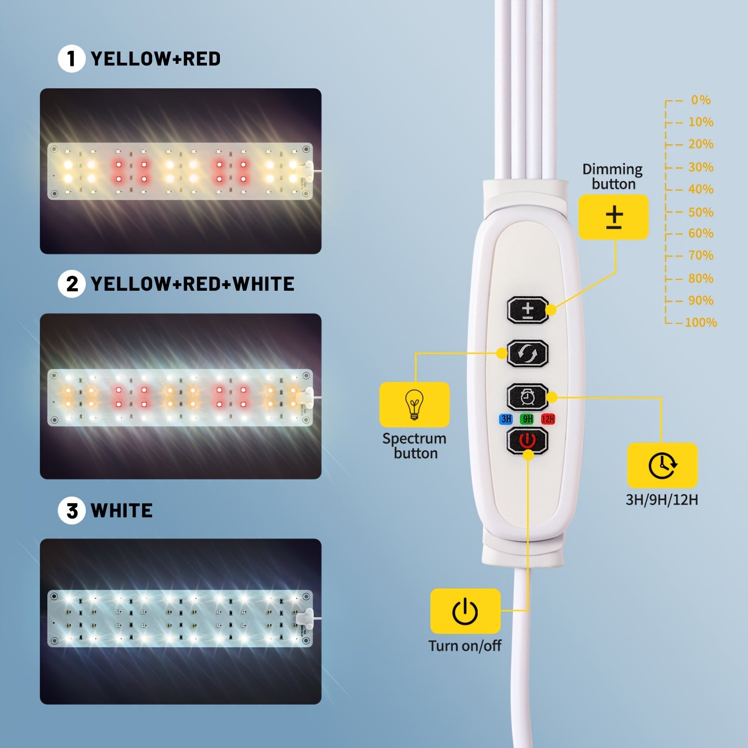 Indoor Plant Grow Light with 160 Dimmable LEDs Full Spectrum Timer 3 Modes