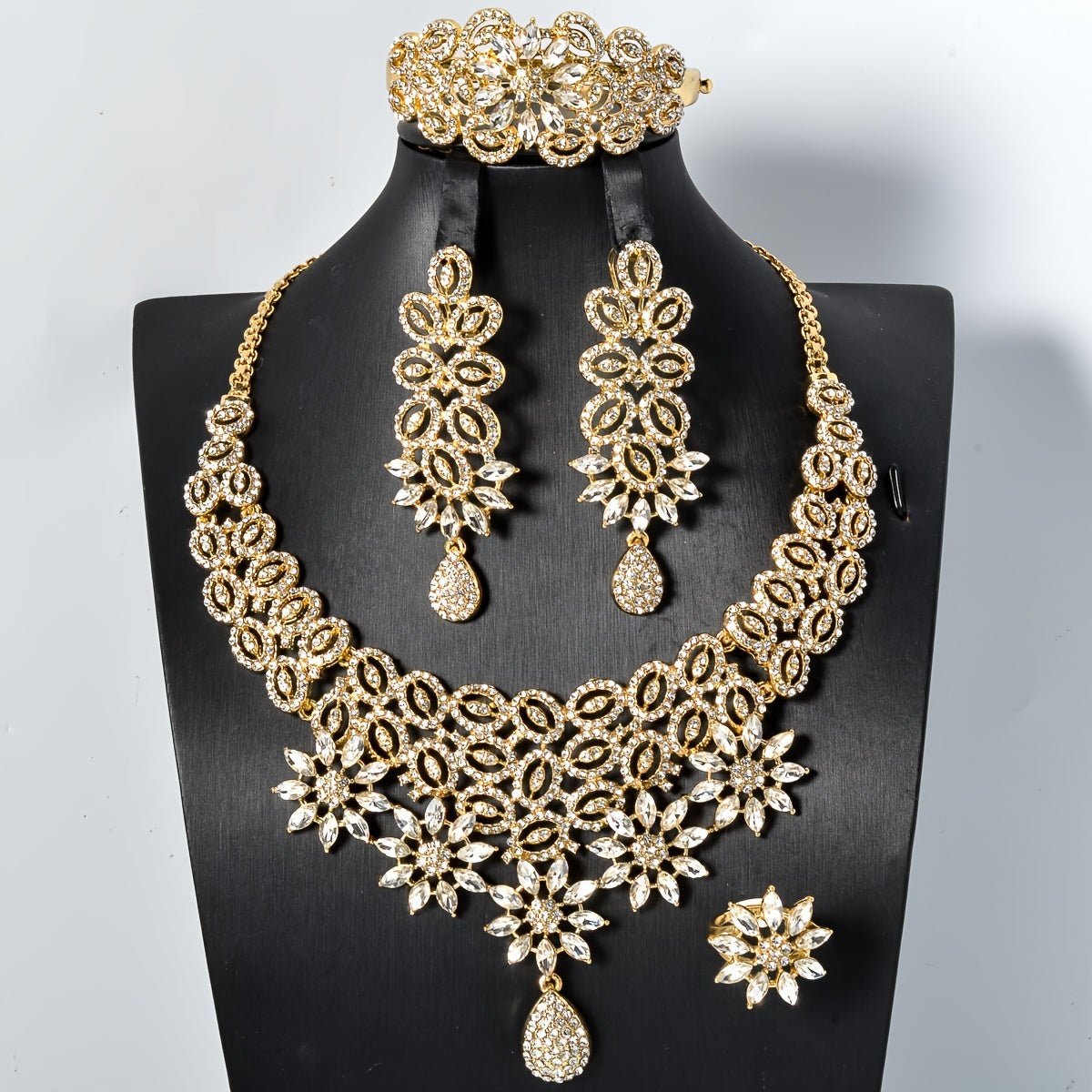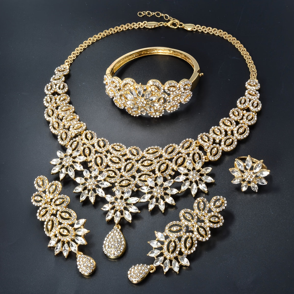 Elegant Jewelry Set with Necklace Bracelet Ring and Earrings for Weddings