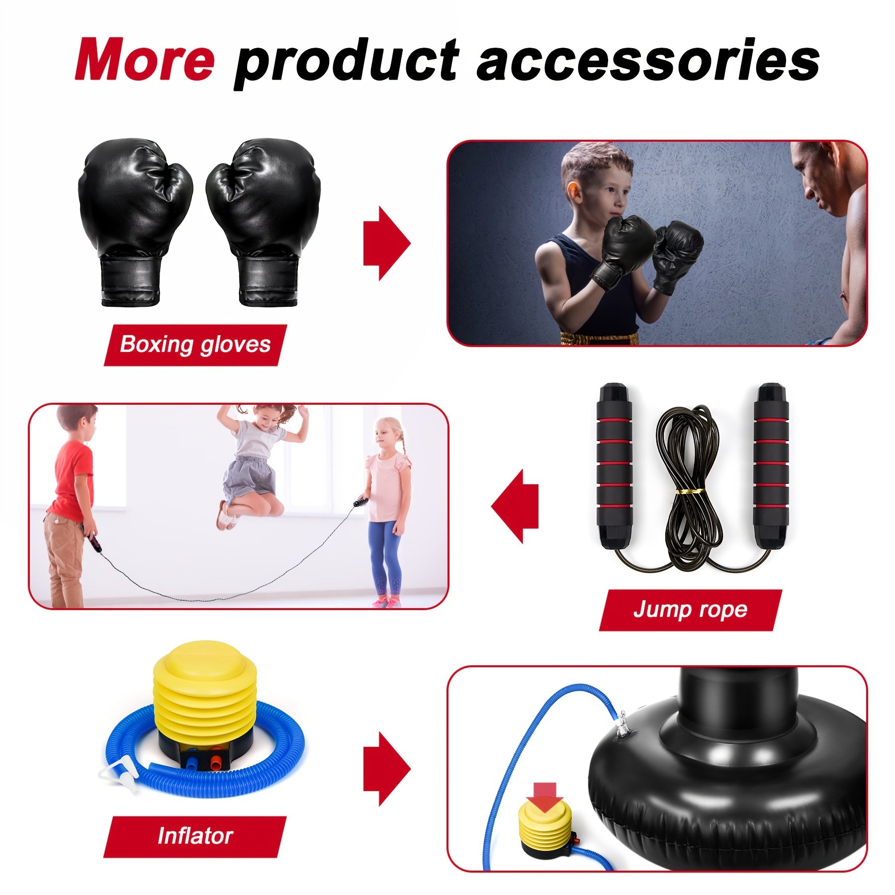 Kids Inflatable Punching Bag Set with Boxing Gloves and Skipping Rope for Karate and Kickboxing