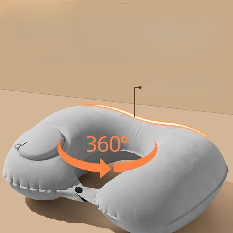 Inflatable U-Shaped Neck Pillow Travel Cervical Support Cushion Black Grey