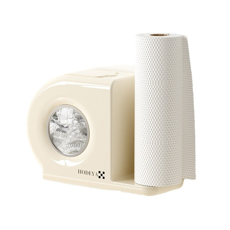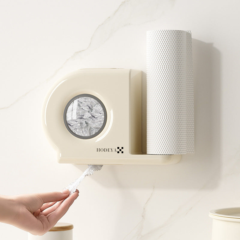 Wall-Mounted Kitchen Organizer with Plastic Wrap Dispenser and Utensil Holder