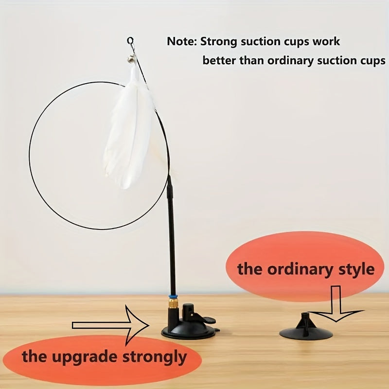 Interactive Cat Teaser Wand Toy with Steel Wire Detachable Feather and Suction Cup Base