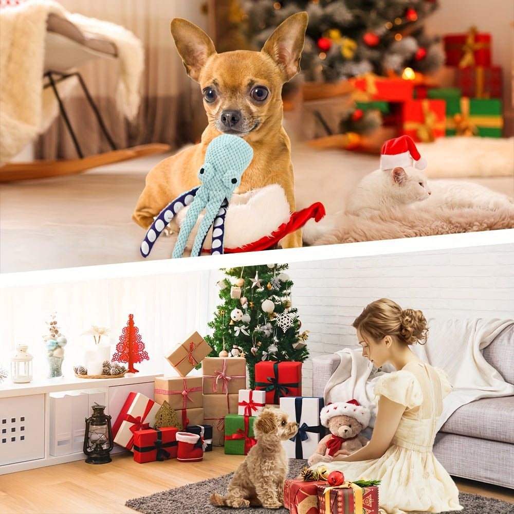 Interactive Plush Octopus Dog Toy No Batteries Squeak for All Breeds