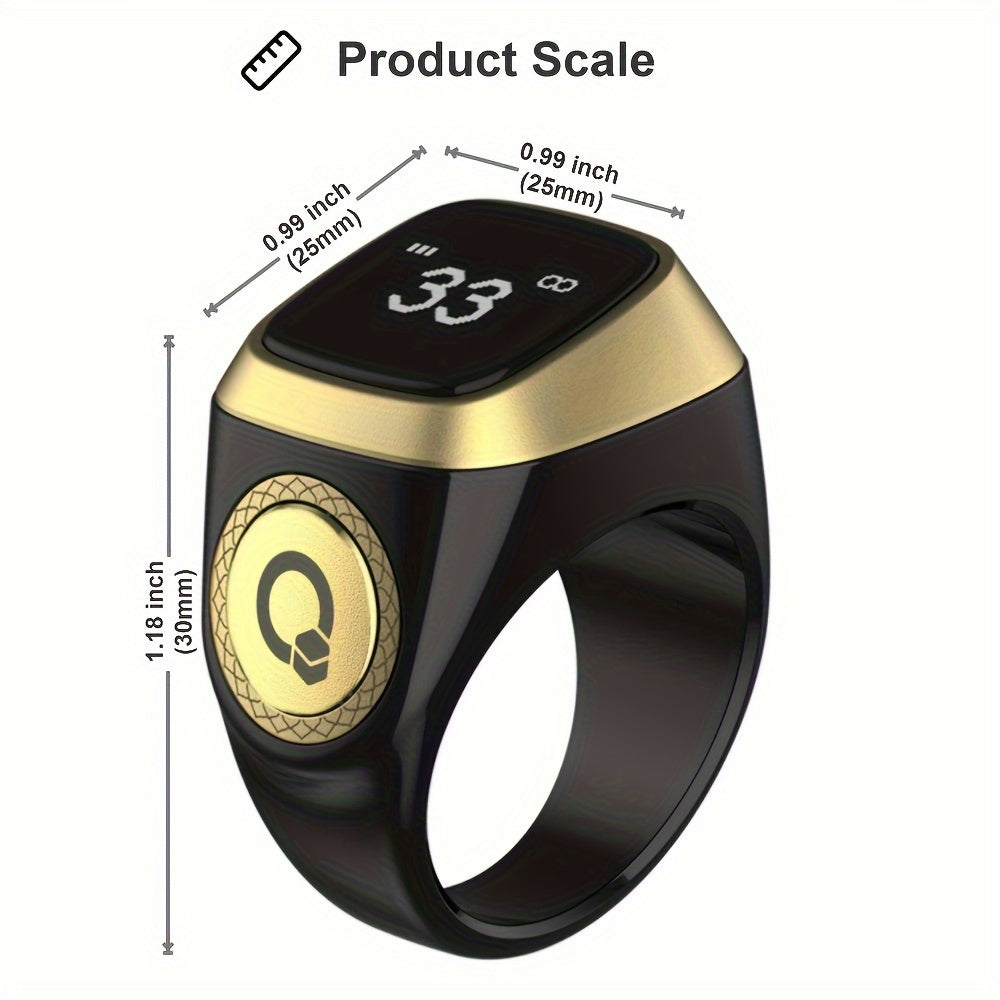 Plating: No Plating Mosaic Material: No Mosaic Material Main Material: Plastic Type: Single Ring Style: Arabian Power Mode: USB Charging Operating Voltage: ≤36V Item ID: 01221388 NOTE: For safety delivering, the product you just received is no power, so you need to plug it in to charge before using. Product Name: Smart Ring Counter for Muslim, Digital Tasbeeh Finger Counter, Muslim Prayer Smart Rings, Azan Alarm Clock, 5 Prayer Time Reminder, Prayer Direction Indicator, Muslims Prayer Digital Beads Description: 1. Time Display. (You can use it as Watch Time Display.) 2. 5 Azan Alarm Clock. (You can set 5 Prayer Time Reminders by the Smart Ring App.) 3. Prayer Direction indicator. 4. Prayer Counters for Muslims. (Muslims Prayer Digital Beads. Make Anaytime, Anywhere.) 5. Large Battery. (Fully charged once and can be used continuously about 3 days.) Specification: Product weight: About 10g Battery capacity: Large Battery (Can be used continuously about 3 days.) Appearance size: 20MM (0.79inch)/22MM (0.87inch)/18MM (0.71inch) OLED Display : Prayer Smart Ring is equipped with an OLED screen, which provides better image quality and guarantees low energy consumption. Times reminder: Prayer Smart Ring is easy to connect with Smart Phone. You can receive 5 prayer times reminder. Applicable people: Men, Women, Children Packing List: 1*Prayer Smart Ring 1*USB Charge Cable (No Battery Case, Battery Case need to buy.) 1*Instruction manual