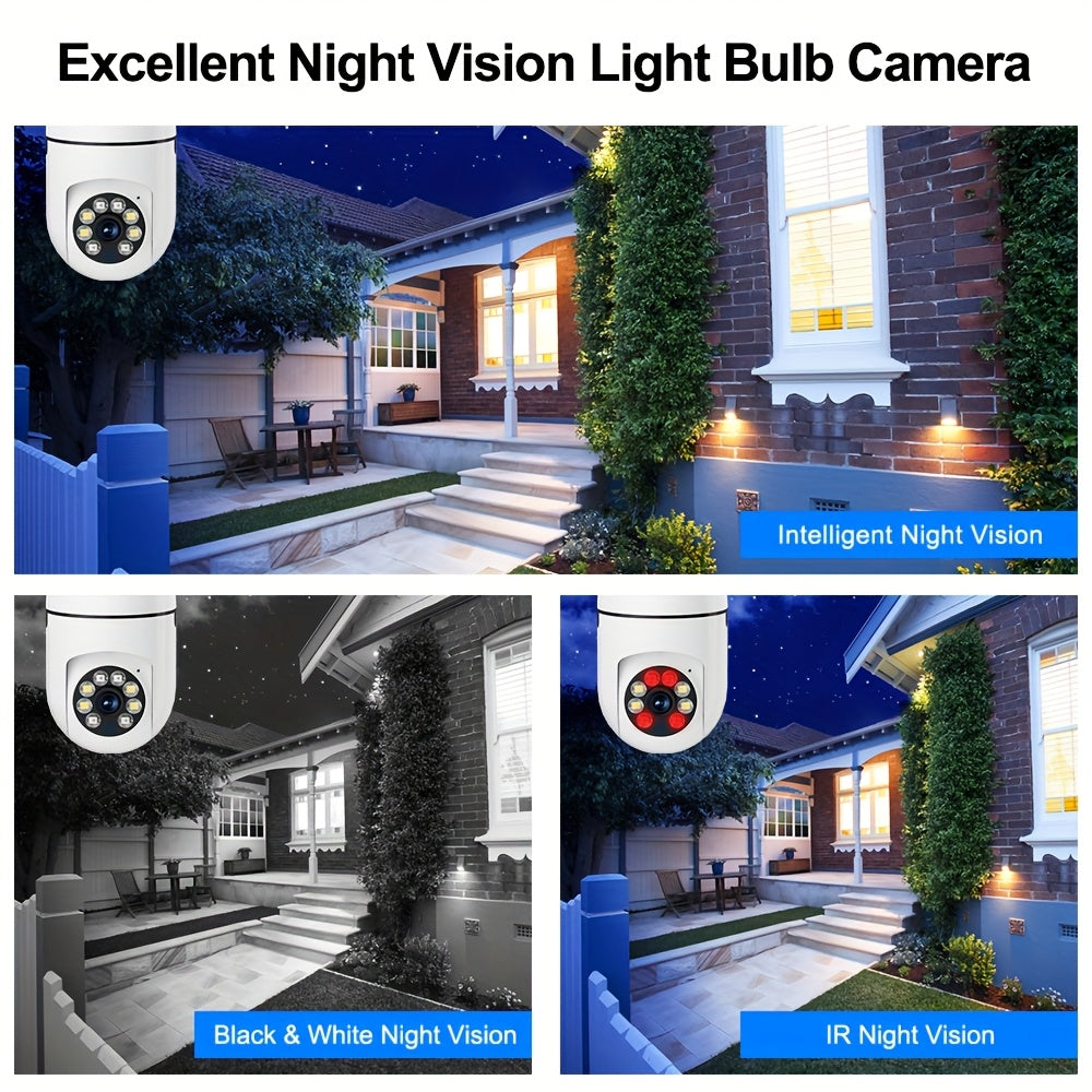 Wireless 1080P Light Bulb Camera Indoor Outdoor WiFi Pan Tilt AI Motion Audio
