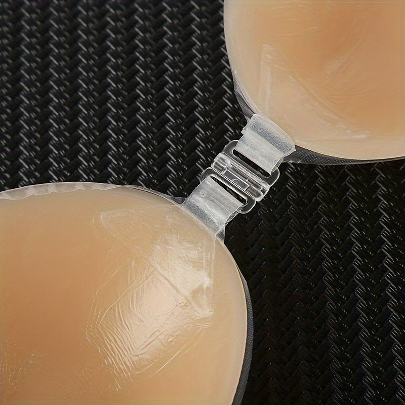 Silicone Strapless Invisible Bra with Self-Adhesive Backless Push-Up Nipple Covers for Women