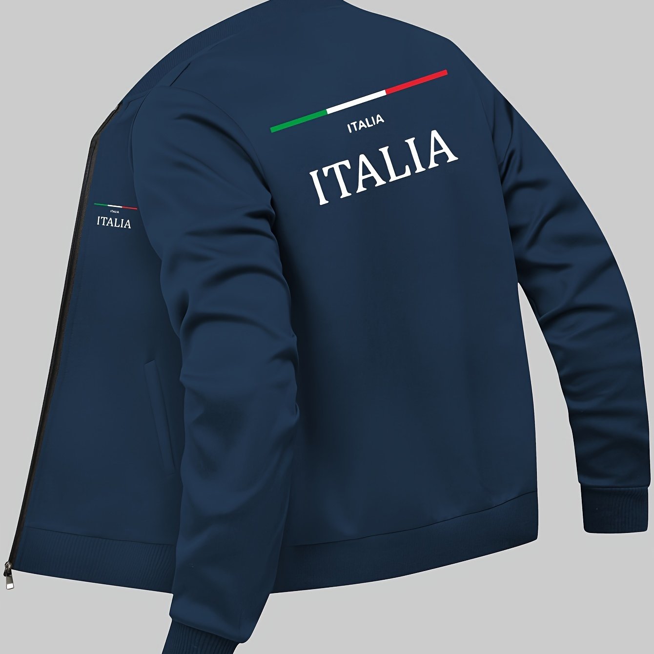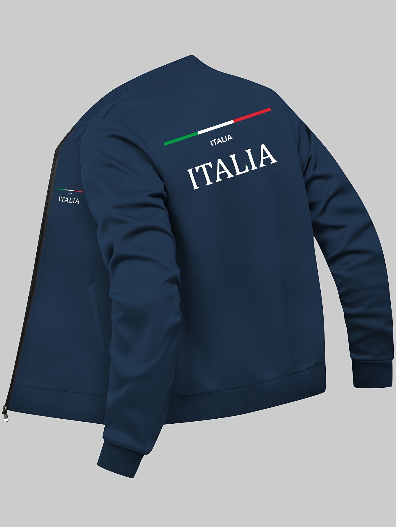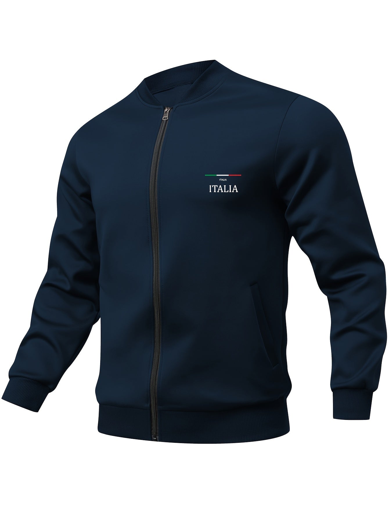 Men's Casual Geometric Pattern Polyester Knit Jacket with Zipper and Pockets