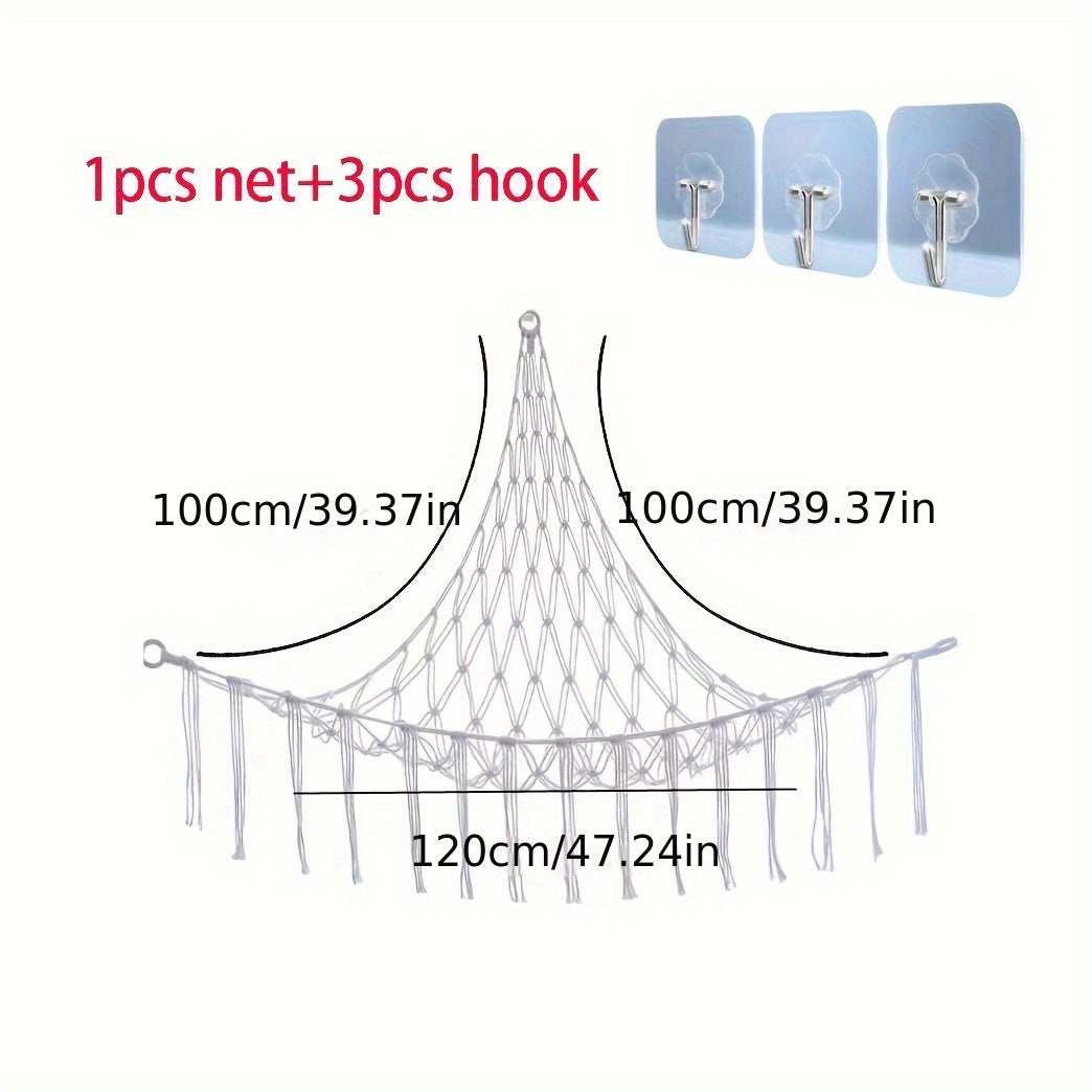 Cotton Plush Toy Storage Net Organizer with Hooks for Kids Room Nursery White