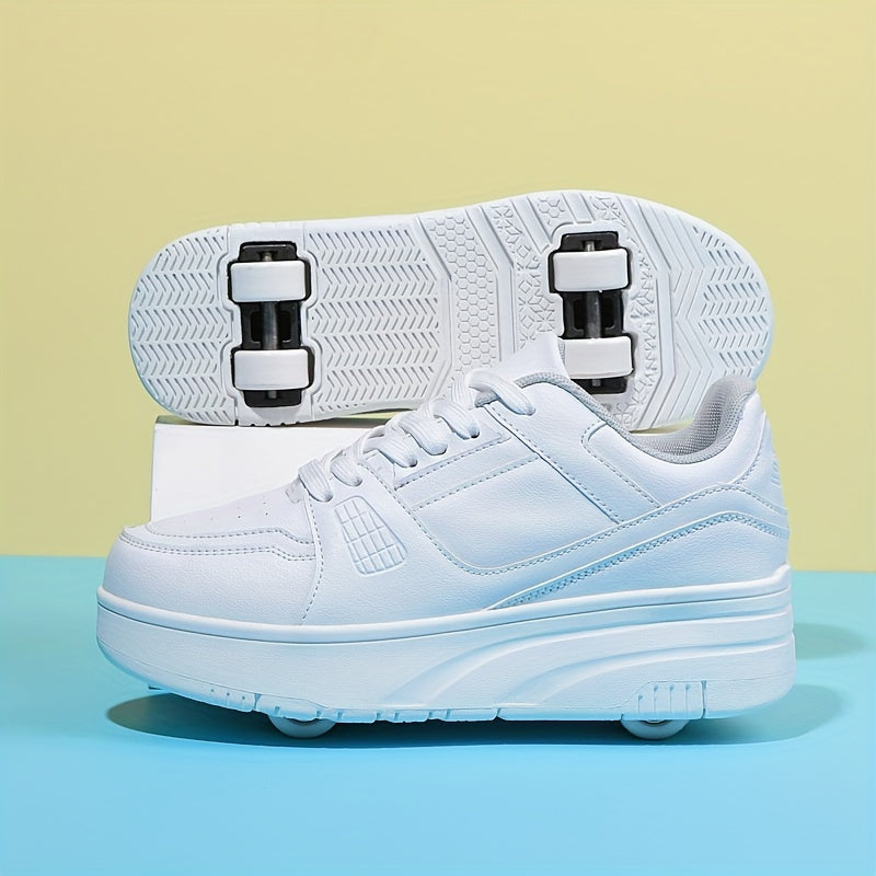 Kids Unisex Skateboard Shoes with Removable Roller Skates Plaid Fabric Low Top Sneakers for Boys and Girls Ages 14 and Under