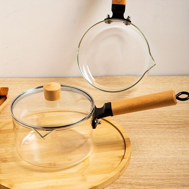 Patterned Glass Saucepan 1.5L with Lid Handle Heat-Resistant for Stovetop Cooking