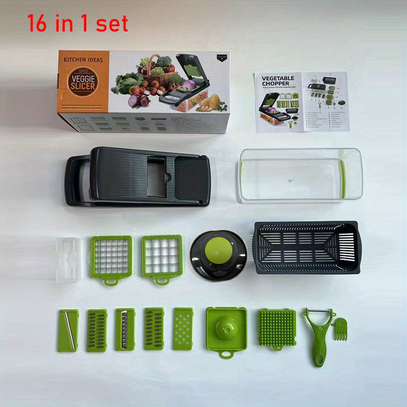 Kitchen Slicer Set 14/16 Pieces Manual Vegetable Cutter Dicer Shredder Plastic