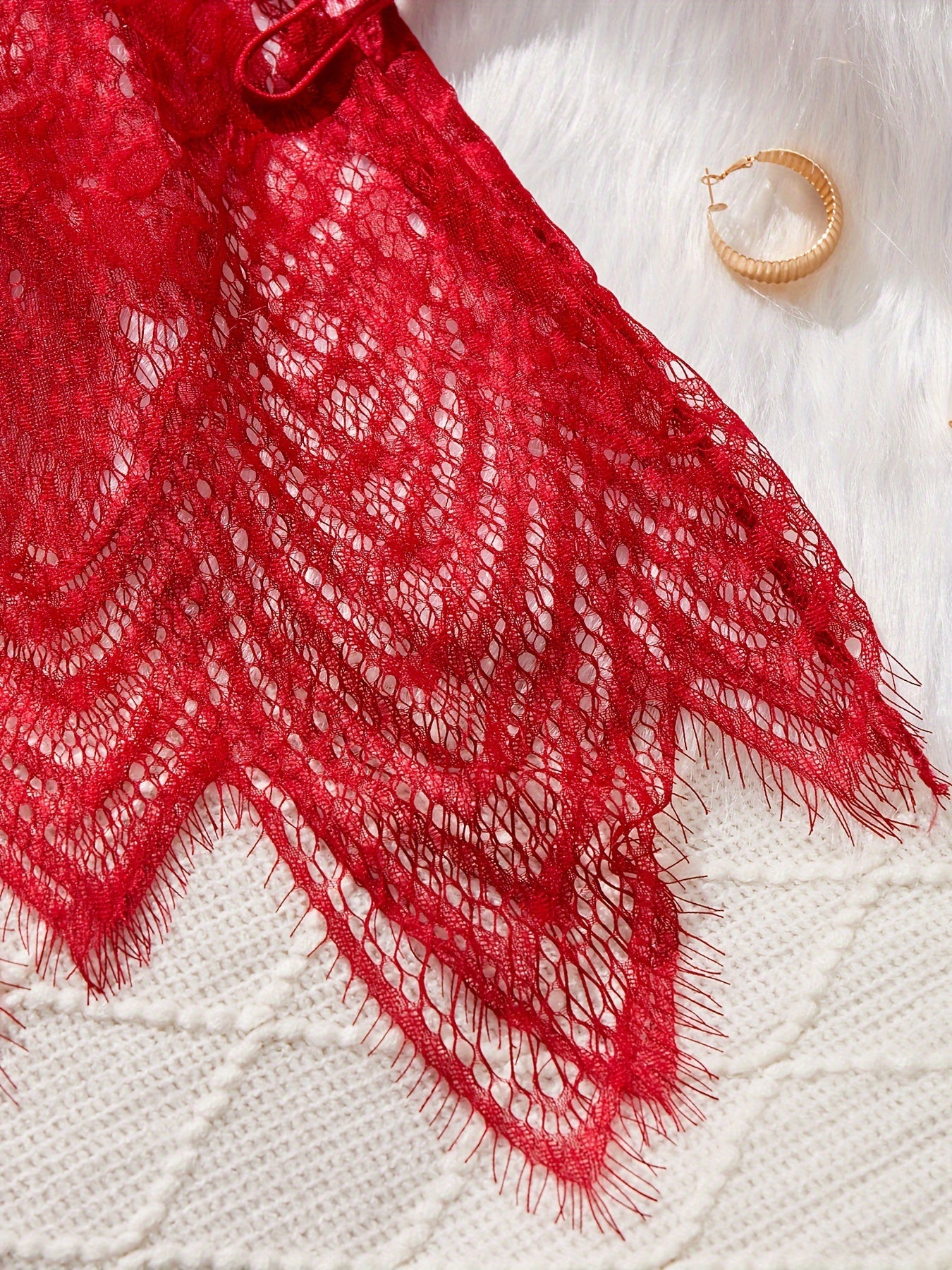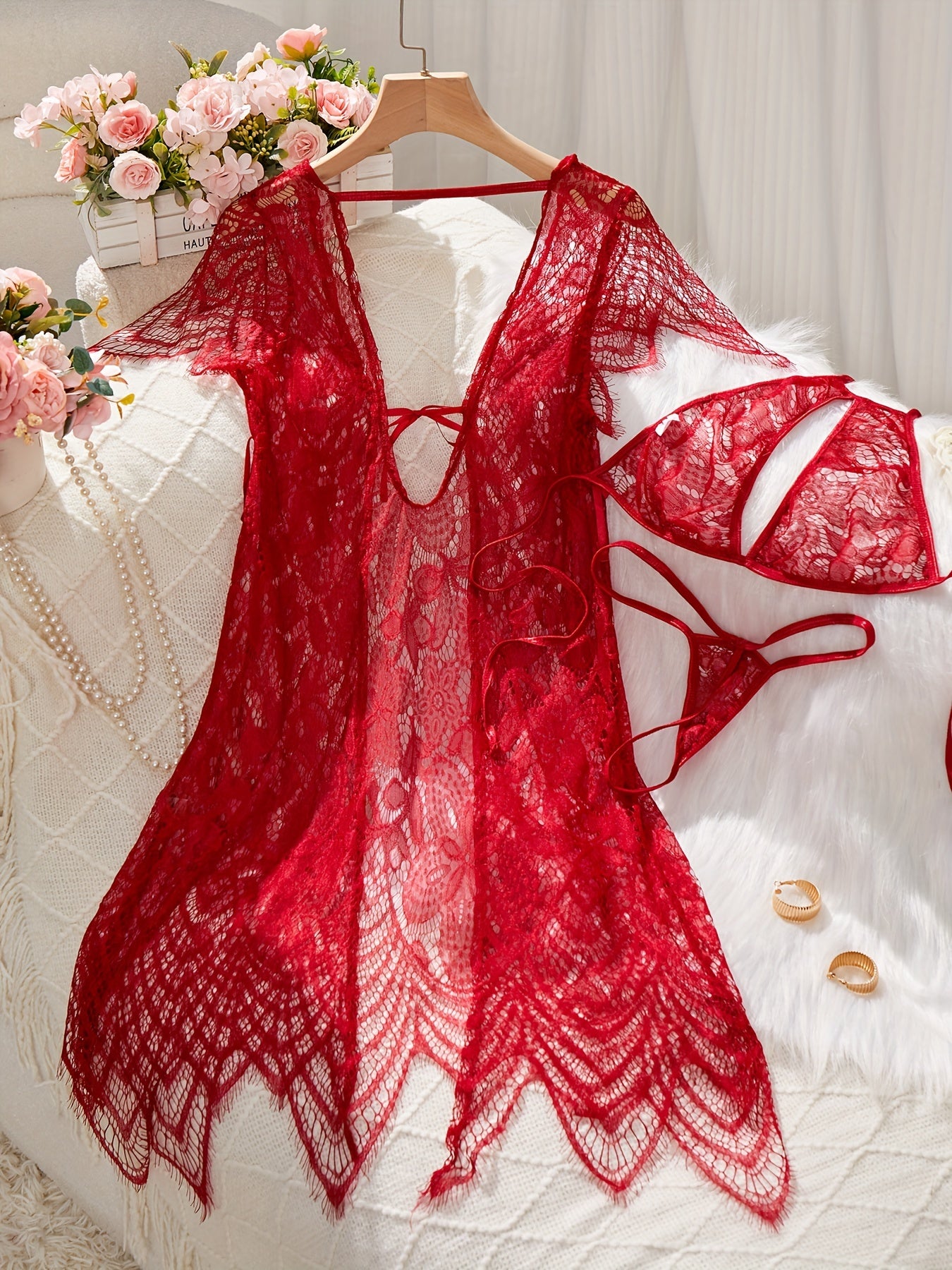 Women's Lace Lingerie Set with Belt, Cardigan, Bra and Thong