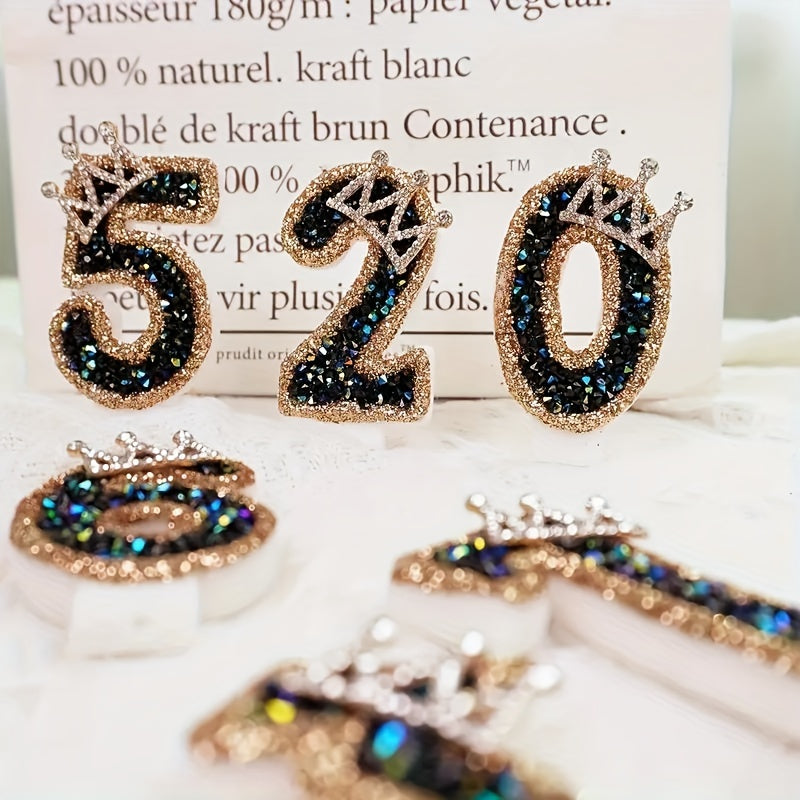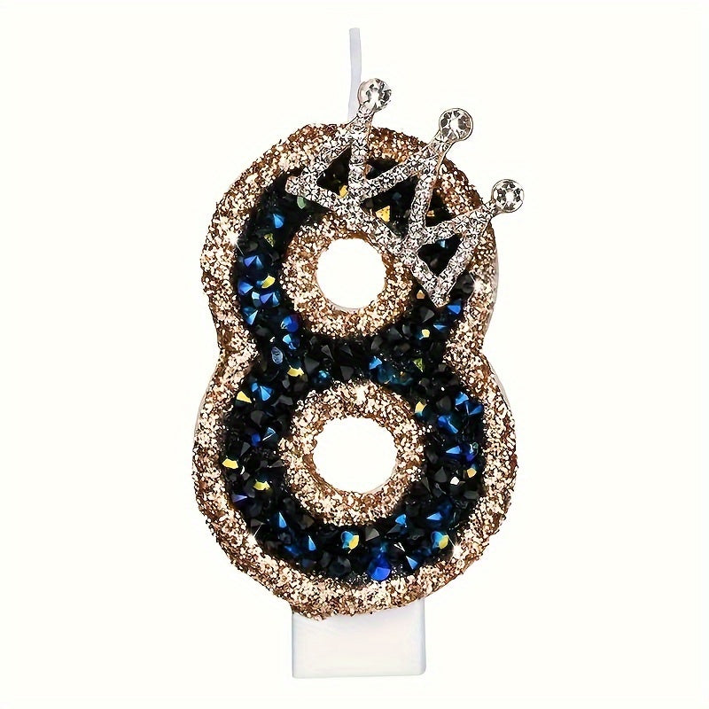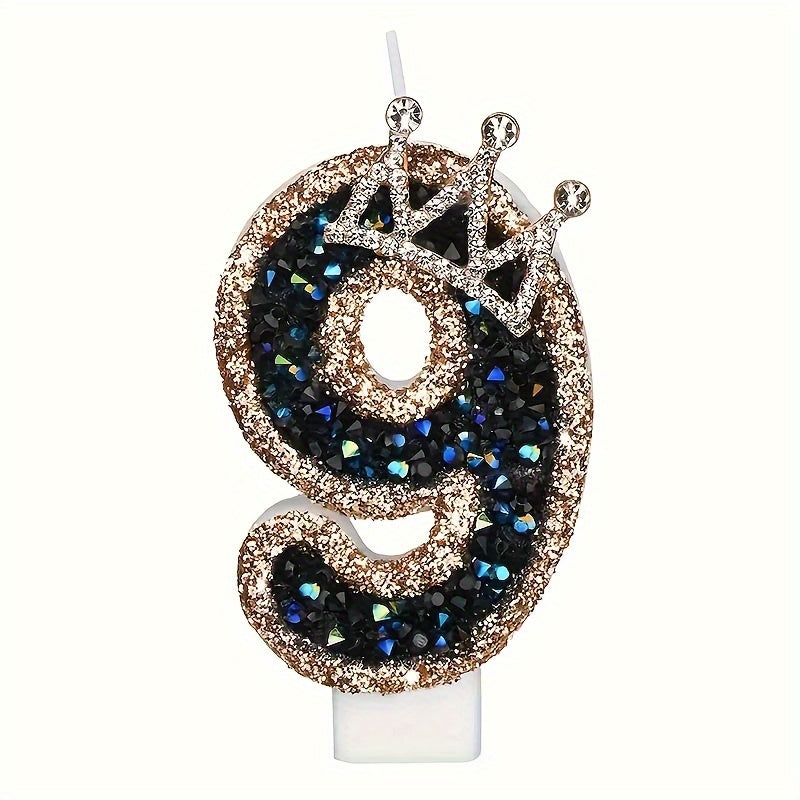 Large Birthday Cake Candles with Crown Metallic Powder Sparkling Number Candles for Kids and Weddings