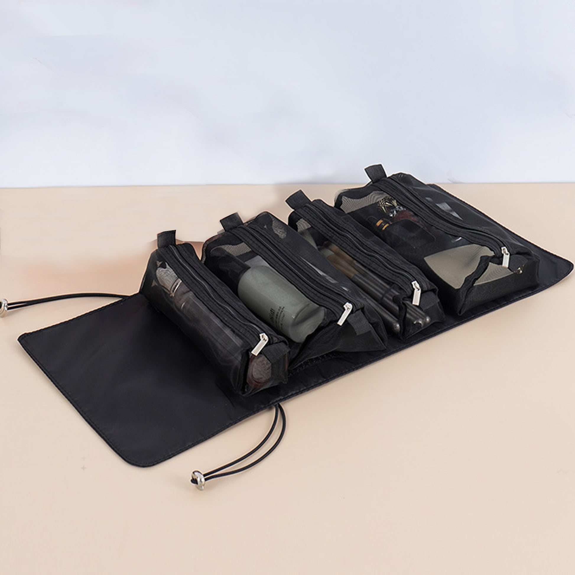 Large Capacity Waterproof Cosmetic Bag with Mesh, Foldable, Washable and Lightweight