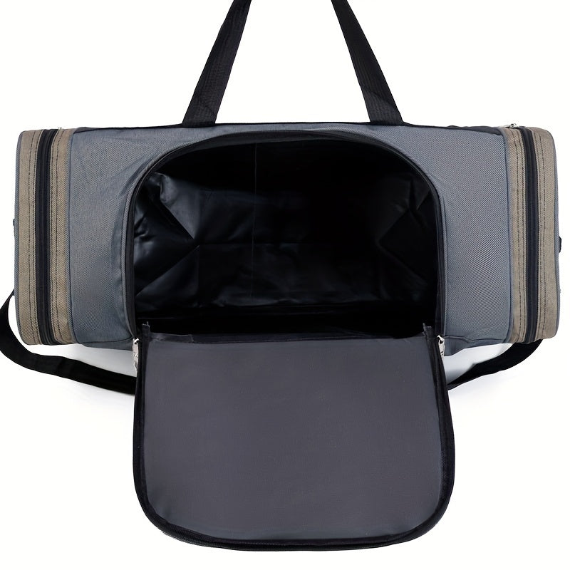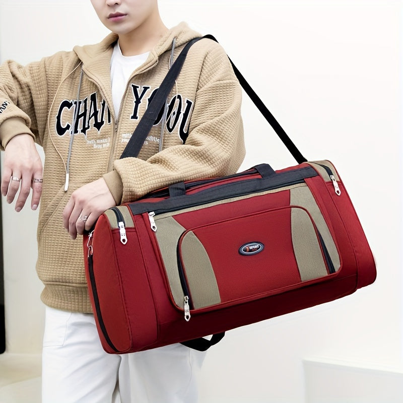 Large Capacity Nylon Travel Bag Black with Zipper Closure and Adjustable Shoulder Strap