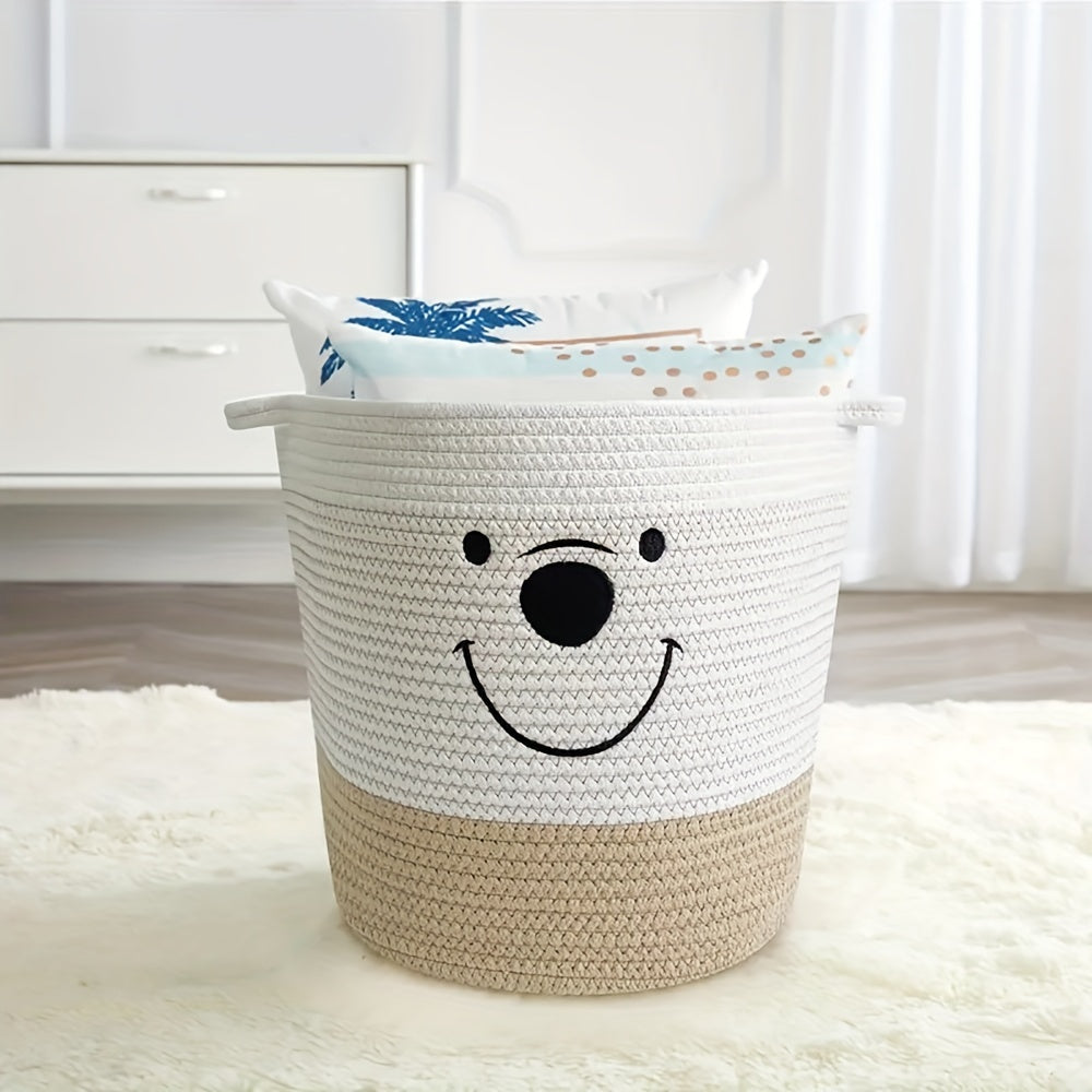 Large Cotton Rope Storage Basket with Handles White and Khaki for Gifts