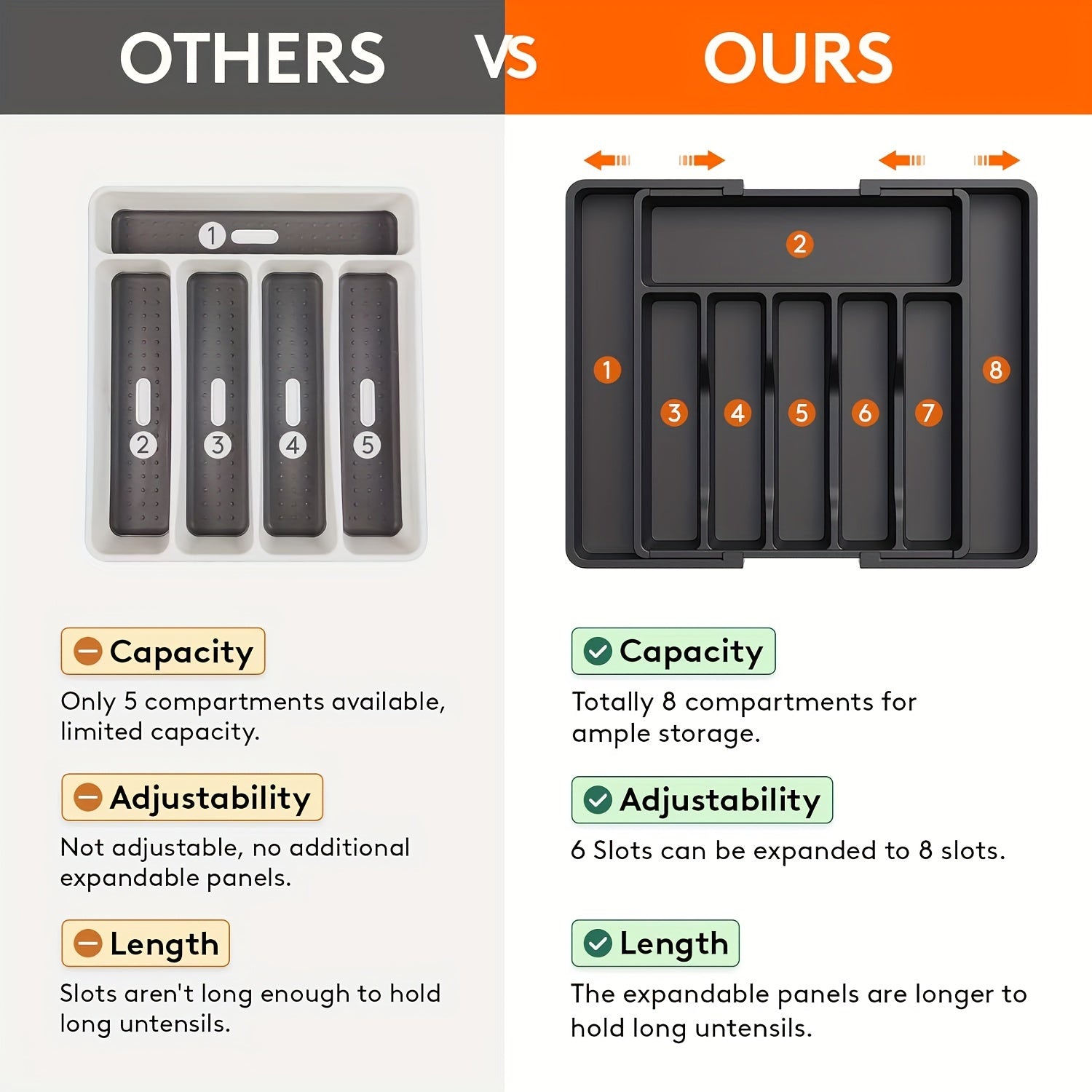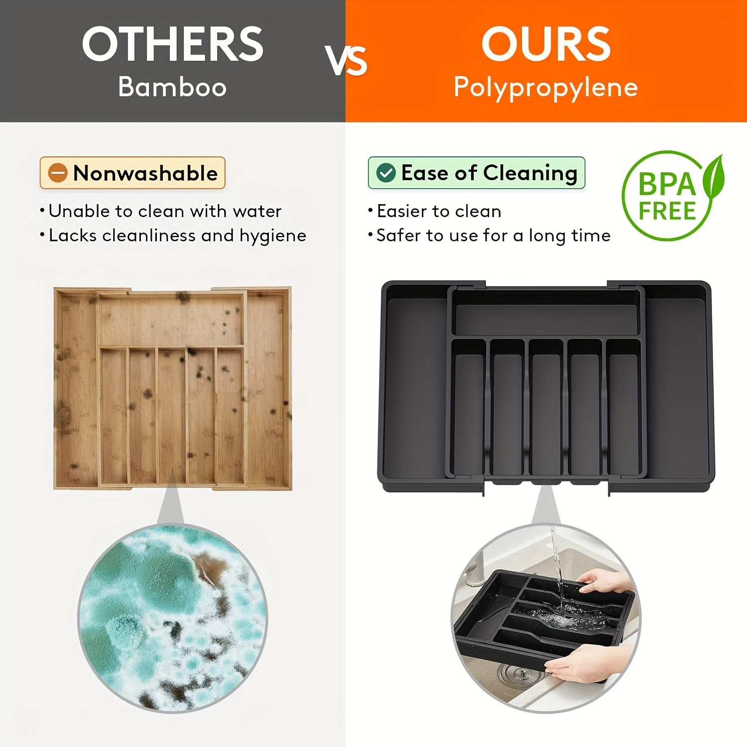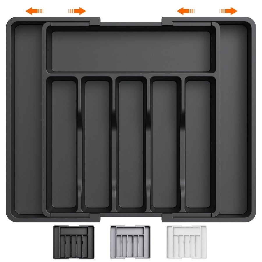 Large Expandable Kitchen Utensil Tray BPA-Free Plastic Silverware Drawer Organizer
