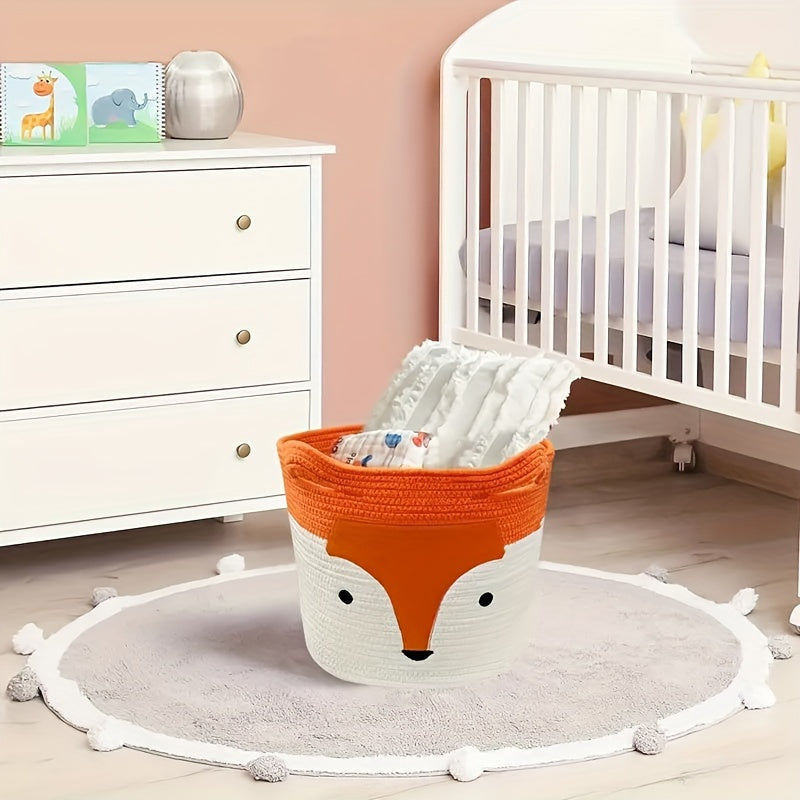 Large Cotton Rope Storage Basket for Clothes with Fox Design