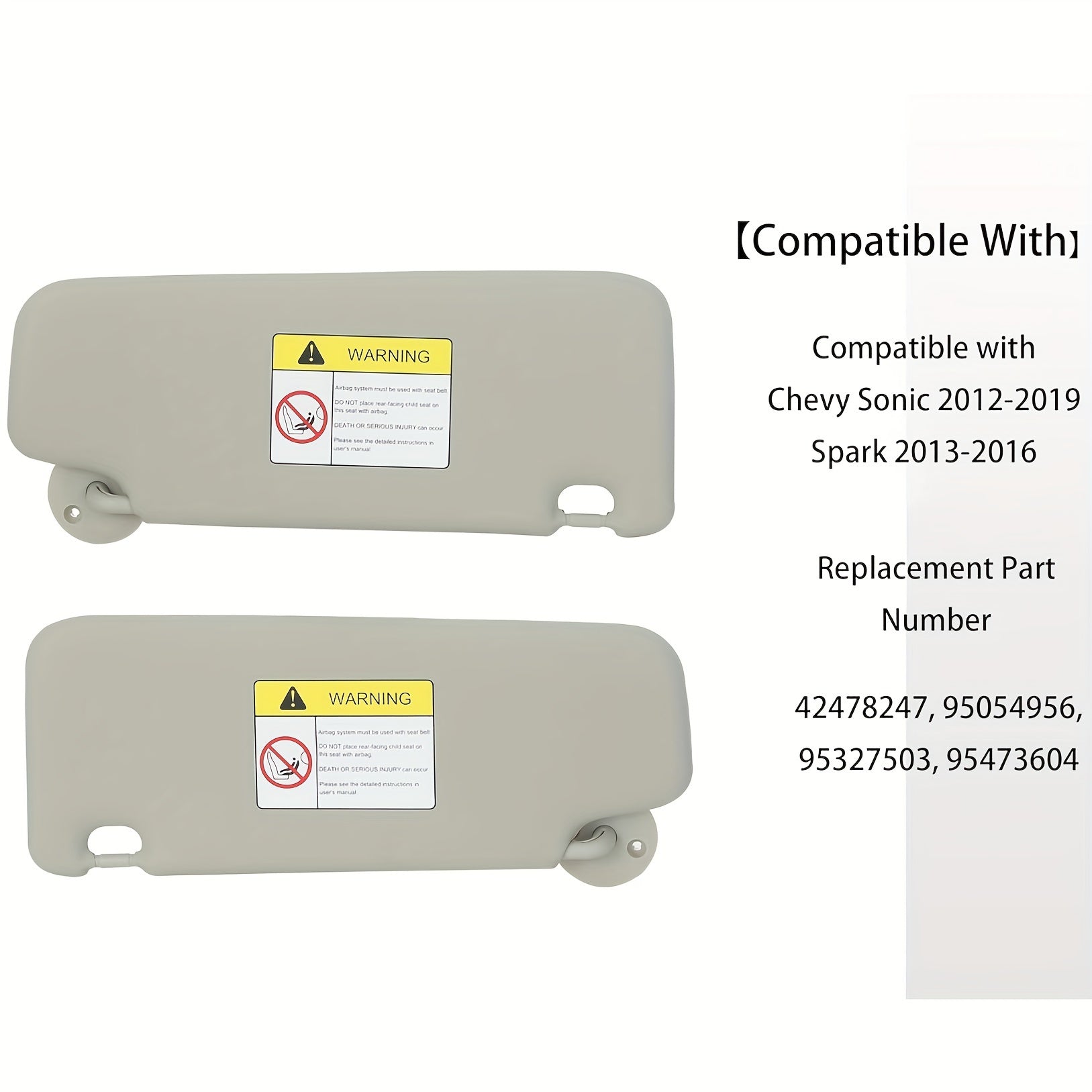 Left and Right Car Sun Visors Gray Durable ABS for Chevy Sonic Spark