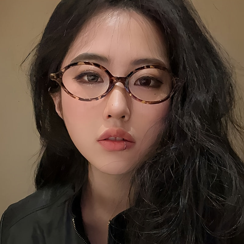 Leopard Print Small Frame Glasses Blue Light Blocking Y2K Style for Screen Use
