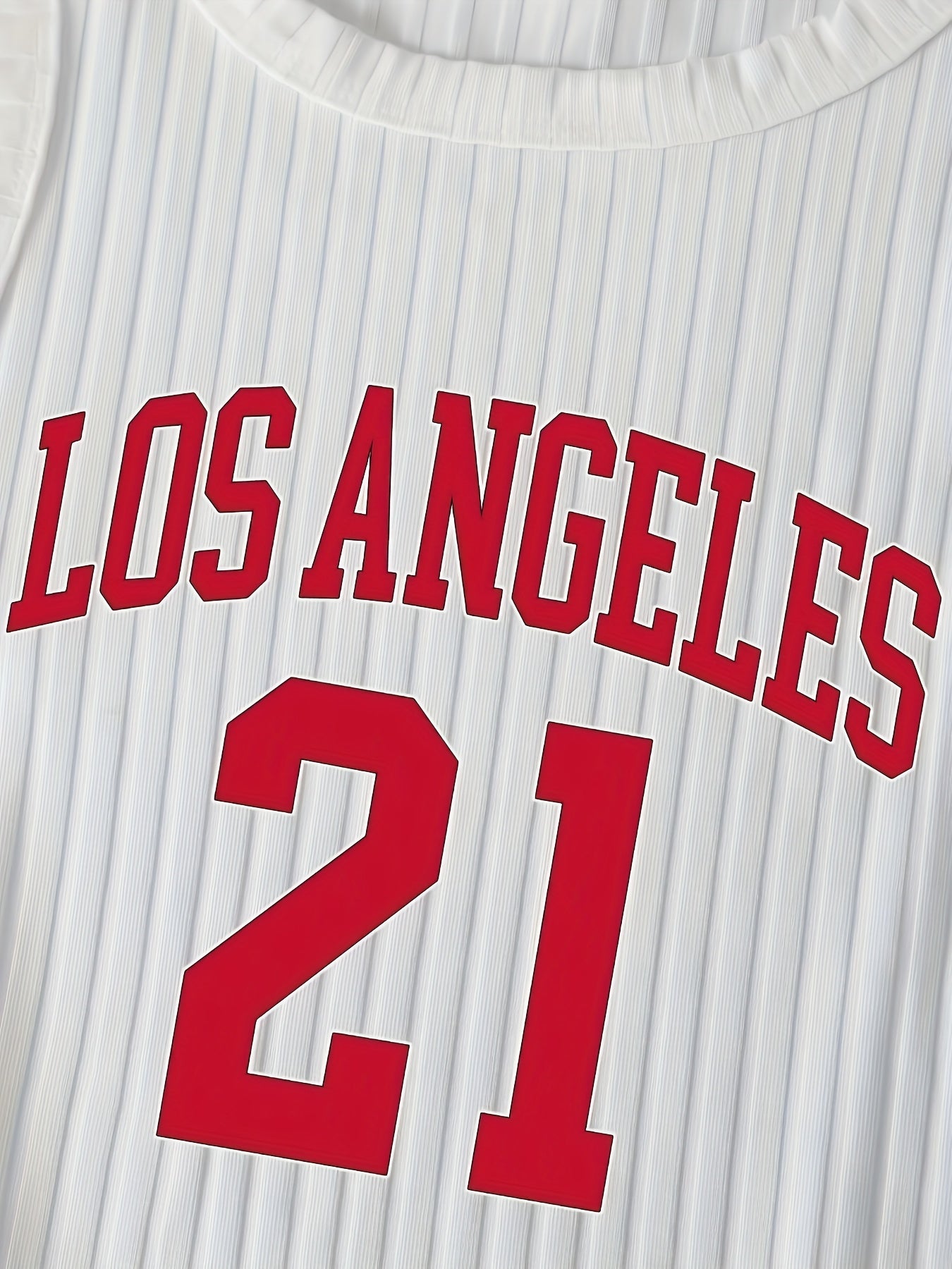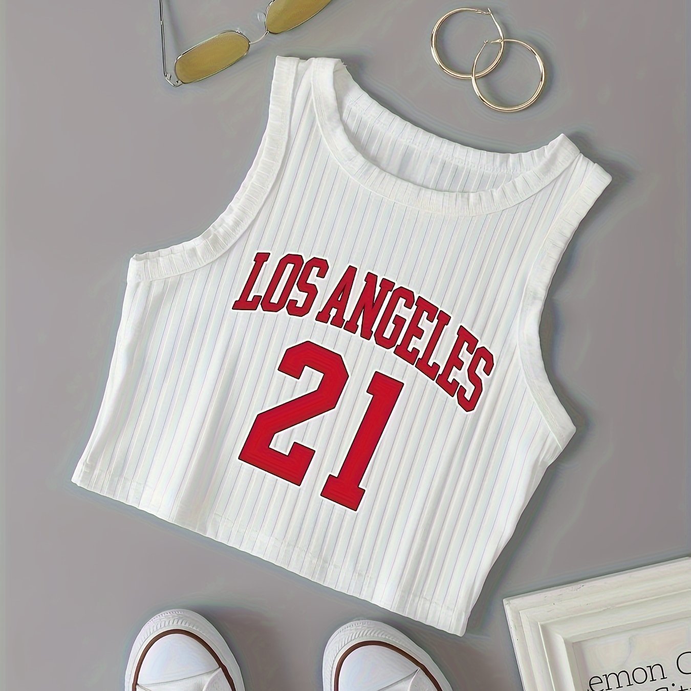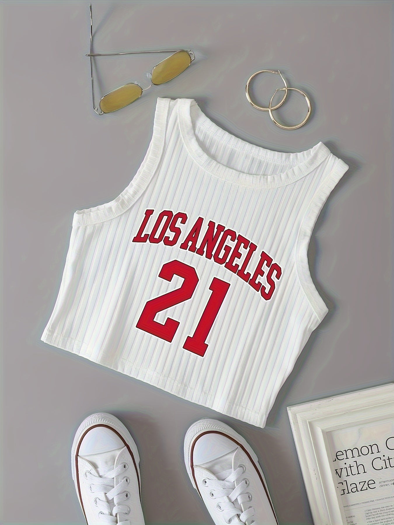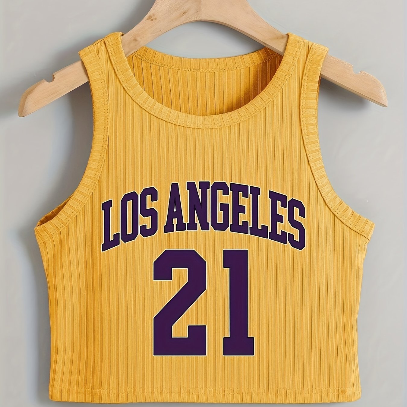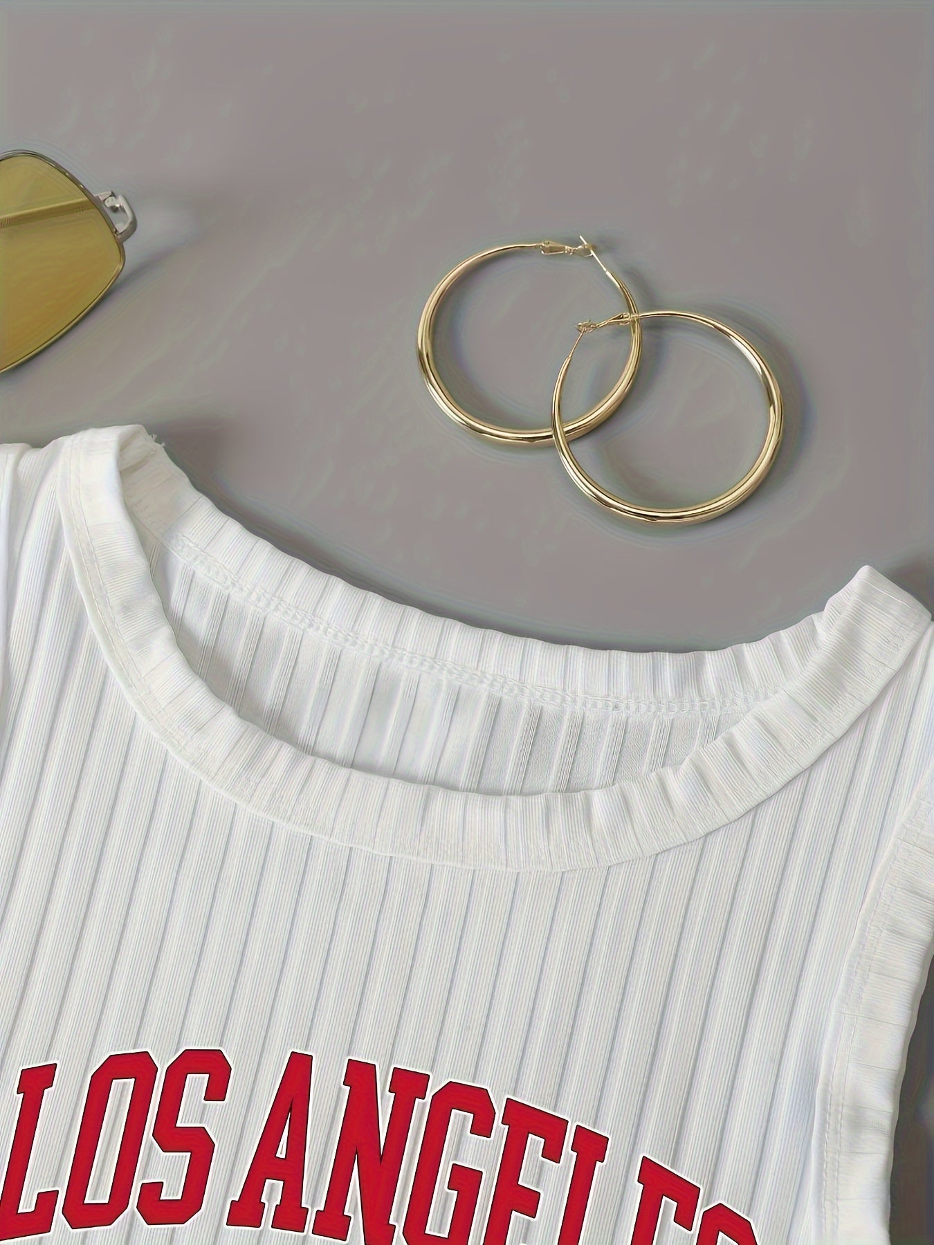 Women's Summer Letter Print Crew Neck Sleeveless Crop Tank Top Cotton Blend
