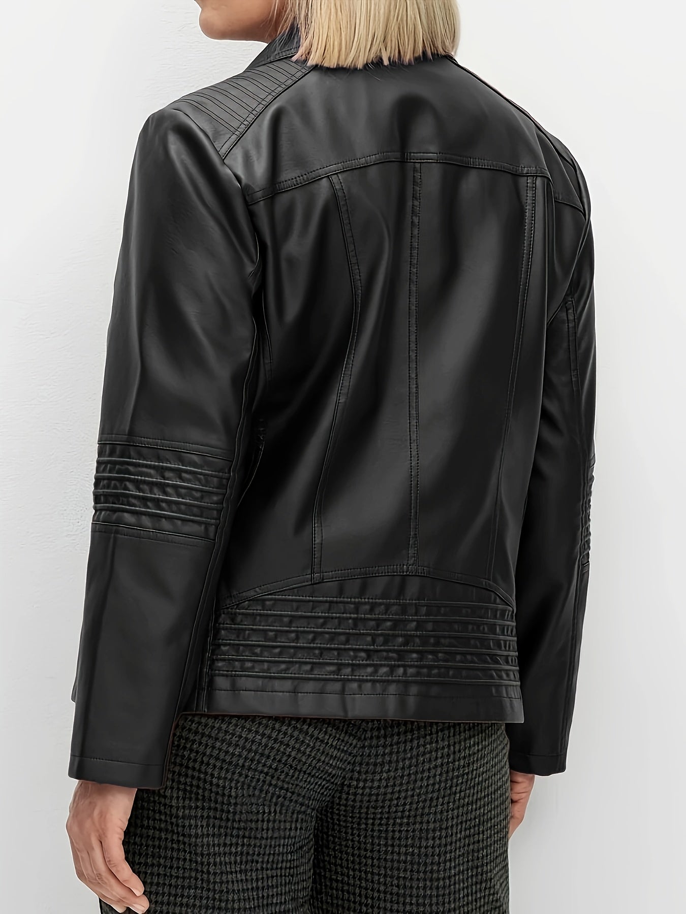 Women's Lightweight Beige Polyester Jacket with Zip-Up Front Pockets and Lapel Collar for Spring Fall Casual Wear