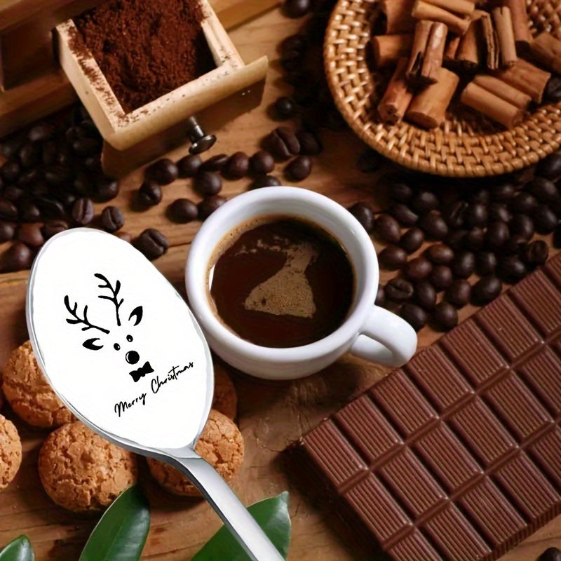 Stainless Steel Coffee Scoop with Reindeer Laser Engraving, Holiday Gift
