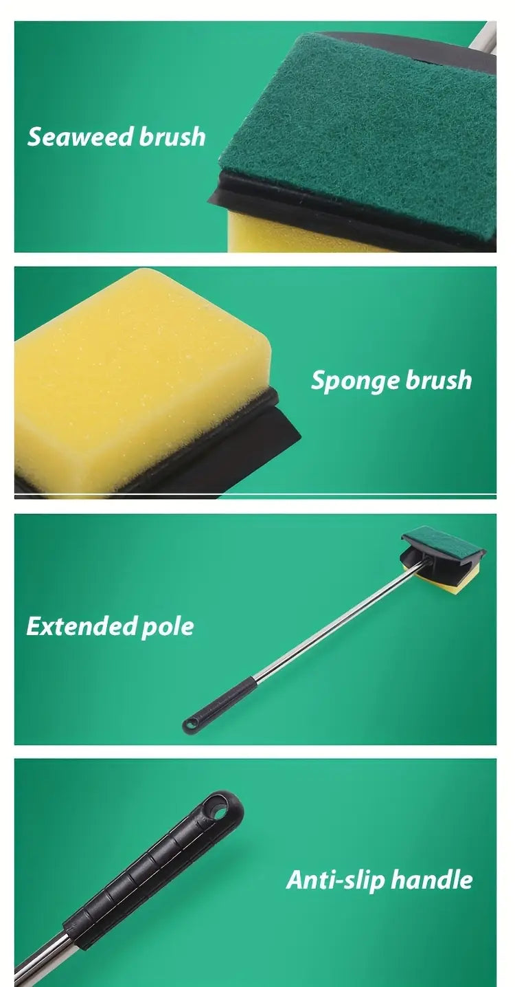 Long-Handled Dual-Sided Aquarium Cleaning Brush with Stainless Steel Algae Scrubber