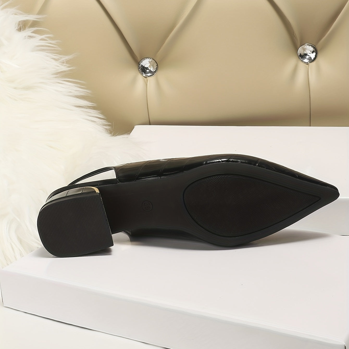 Women's Low Heel Slingback Shoes with Pointed Toe and Elastic Strap for Office