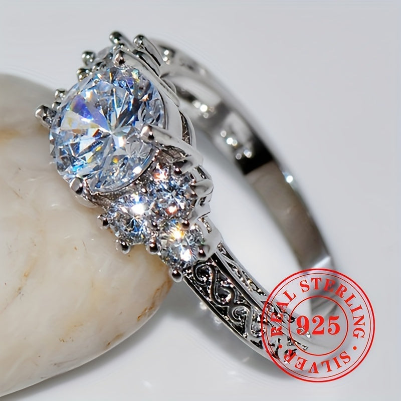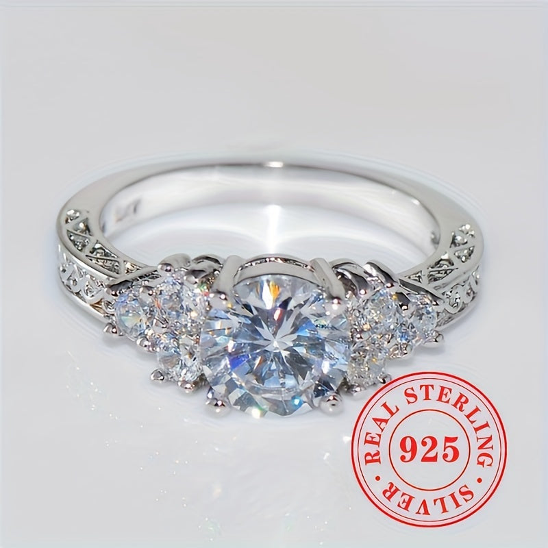 Sterling Silver Halo Ring with Round Cubic Zirconia April Birthstone for Engagements and Weddings