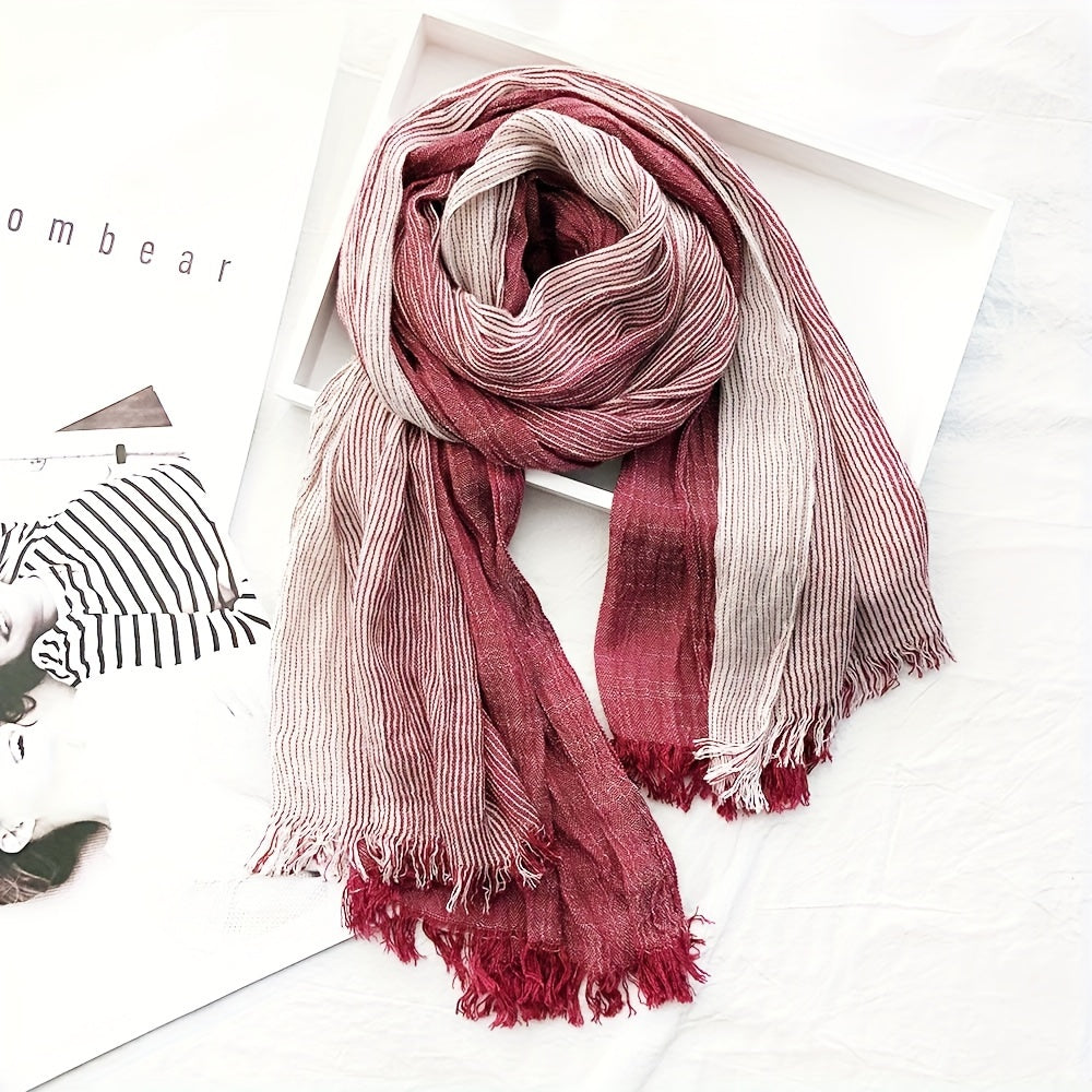 Men's Warm Scarf Fall Winter Blue White Striped Polyester Fringe
