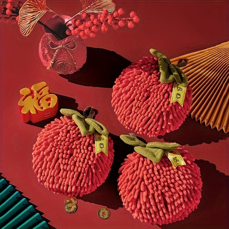 Persimmon-Shaped Chenille Towel Ultra-Soft Absorbent 3500gsm Decorative Green Ribbon Gold Coin