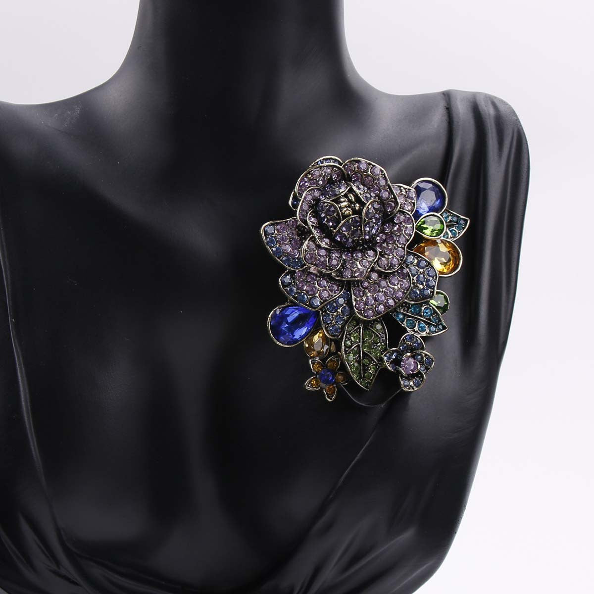 Women’s Punk Style Enamel Rhinestone Rose Brooch Antique Flower Tassel Pin for Coats Dresses