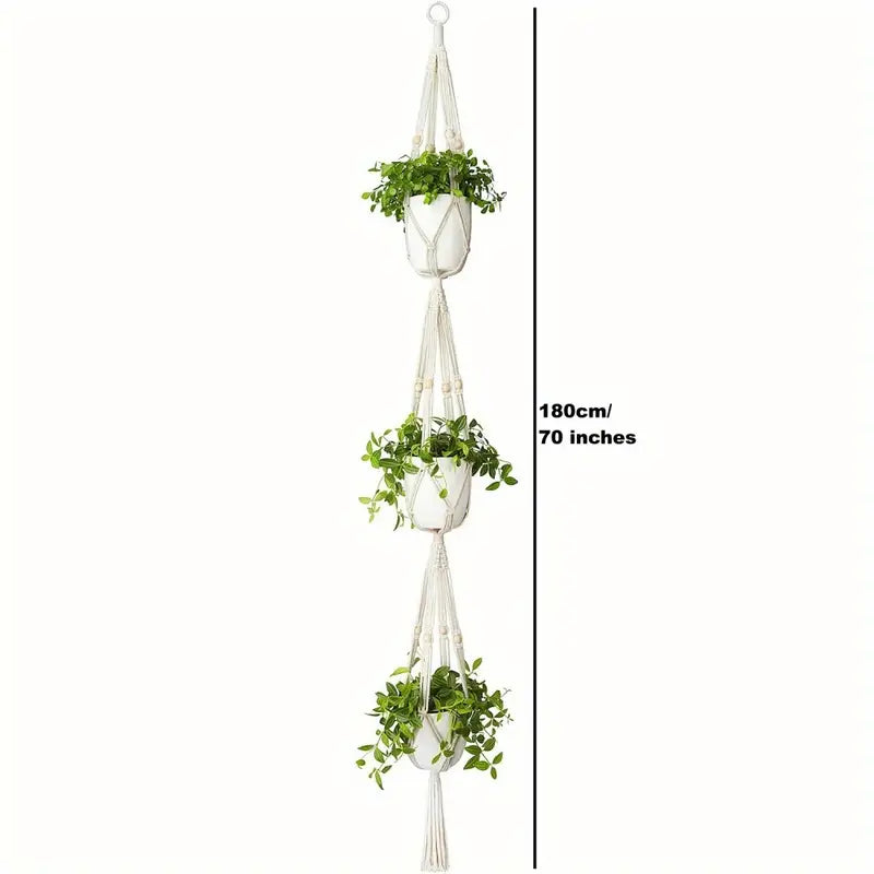 Macrame Double Plant Hanger Indoor Outdoor Cotton Bead 2 or 3 Tier 124.46cm 177.8cm