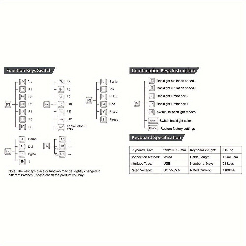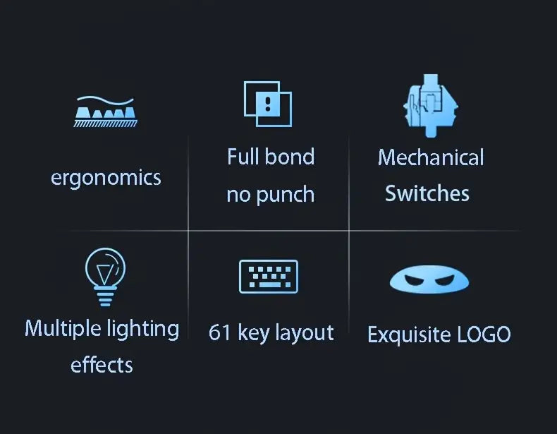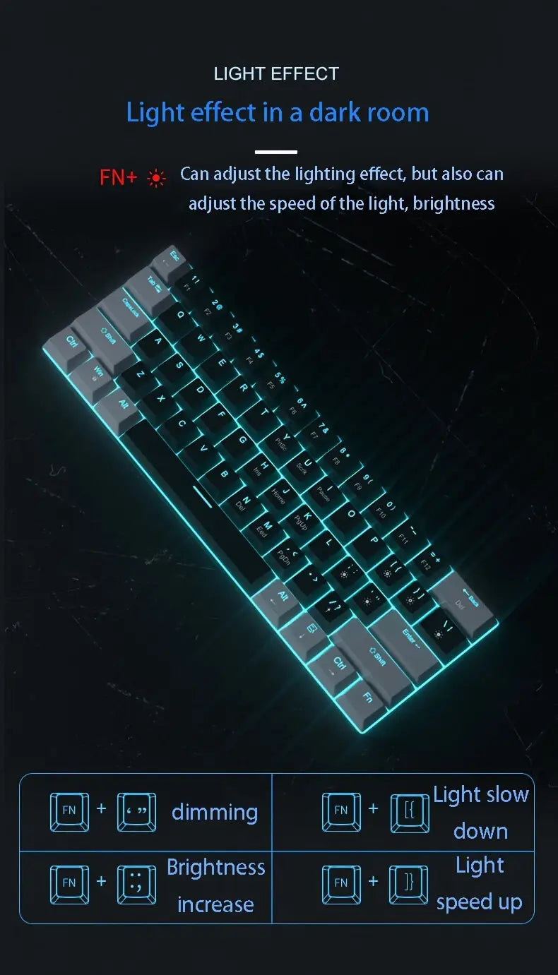 Ergonomic 60% Mechanical Gaming Keyboard Blue Switches Sea Blue Backlit Compact USB