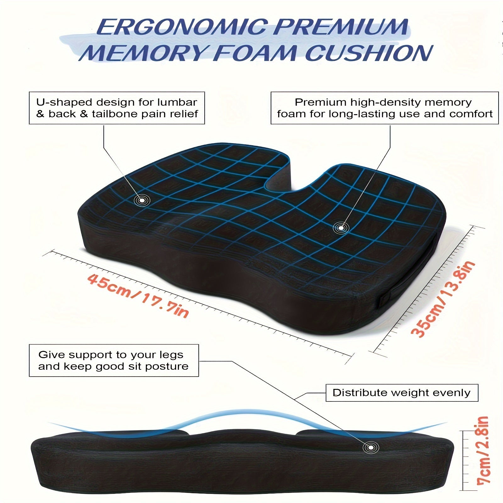 Memory Foam Seat Cushion for Office Car Travel Coccyx Back Pain Relief Black
