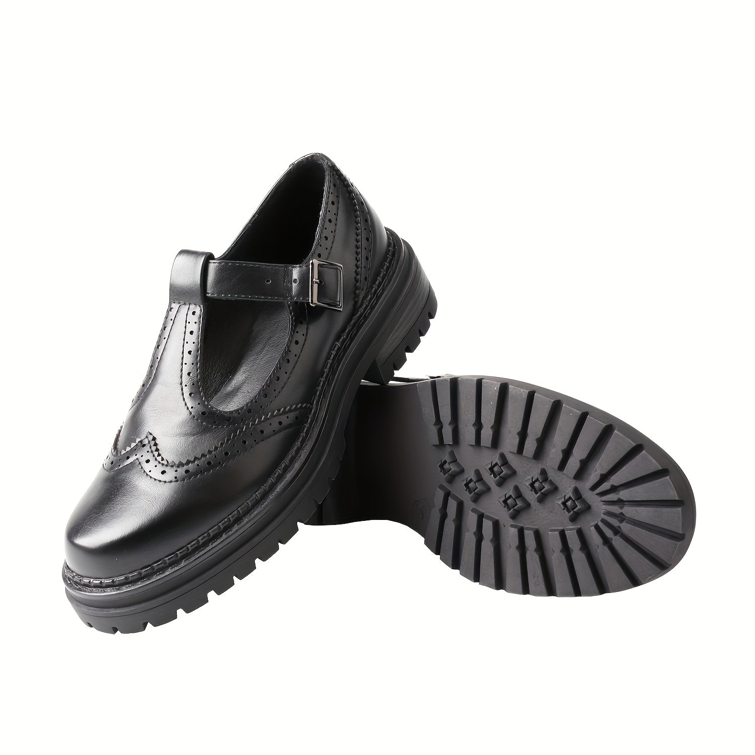 Men Brown Leather Brogue Oxford Shoes Casual Loafers with Buckle