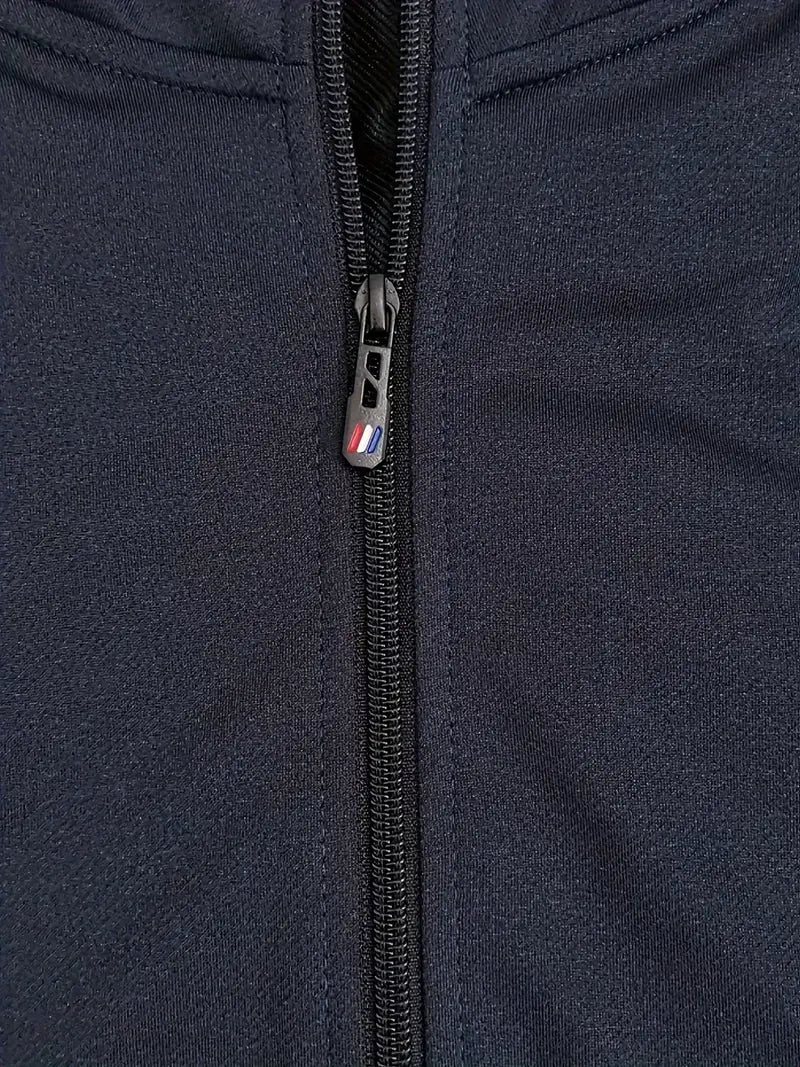 Men's Polyester Two-Piece Outfit Set Long Sleeve Zip-Up Jacket and Drawstring Pants for Spring and Summer Outdoor Activities