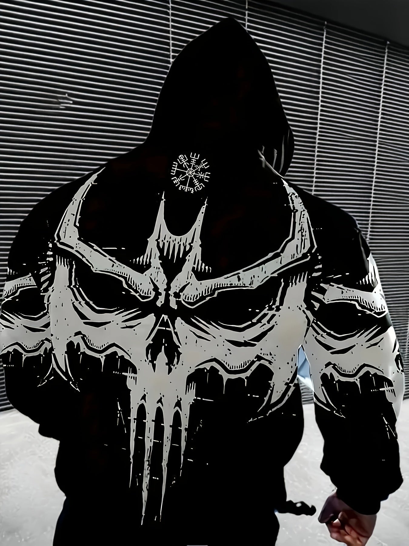 Men's 3D Skull Print Hoodie Casual Pullover with Kangaroo Pocket Large Size