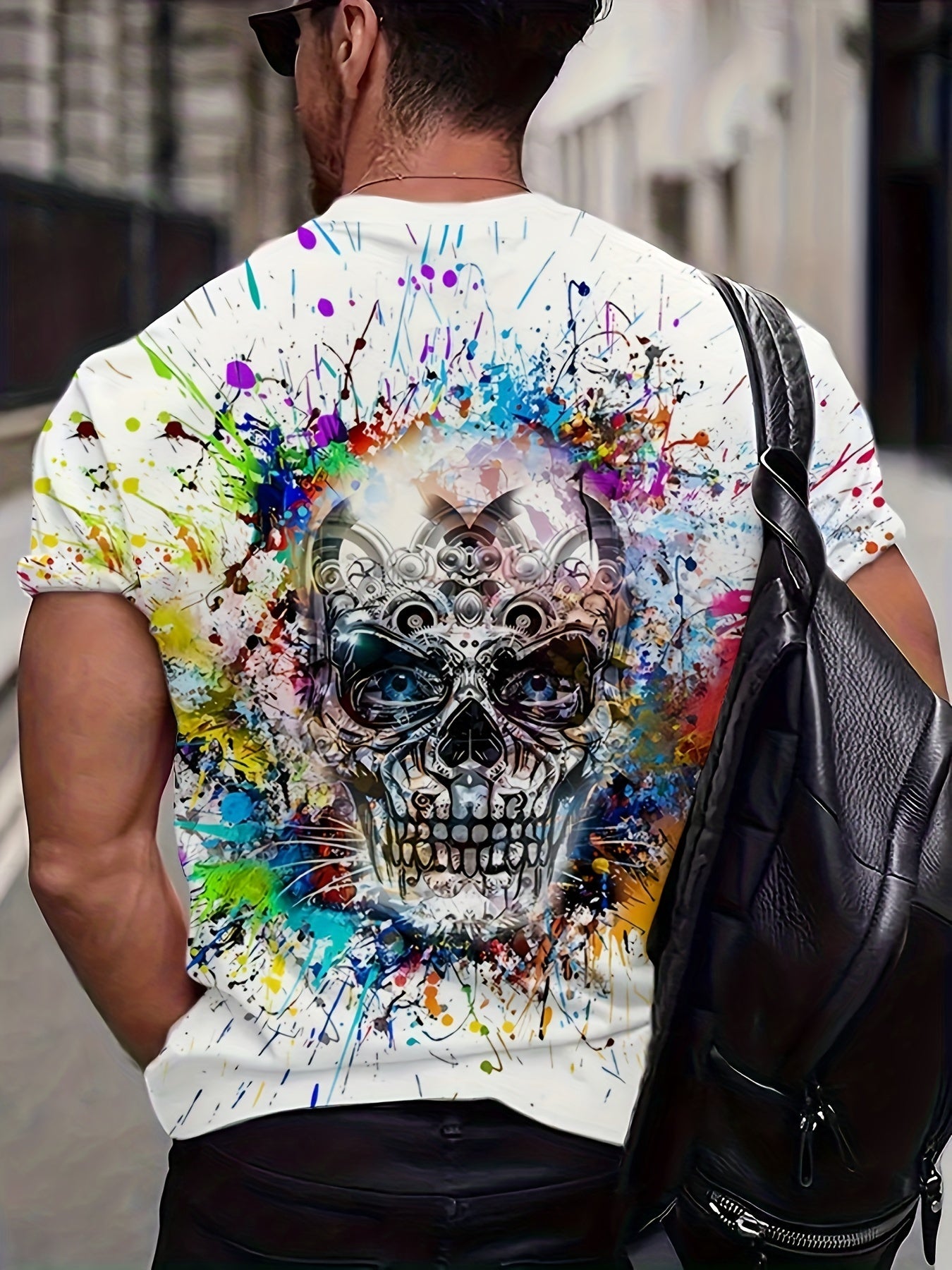 Men's 3D Skull Print T-Shirt Casual Quick-Dry Polyester for Running Hiking Camping