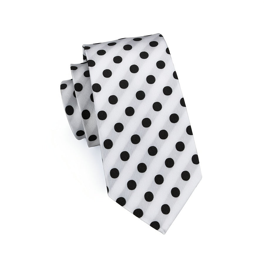 Men's Accessories Set Polka Dot Necktie Pocket Square Cufflinks Gift