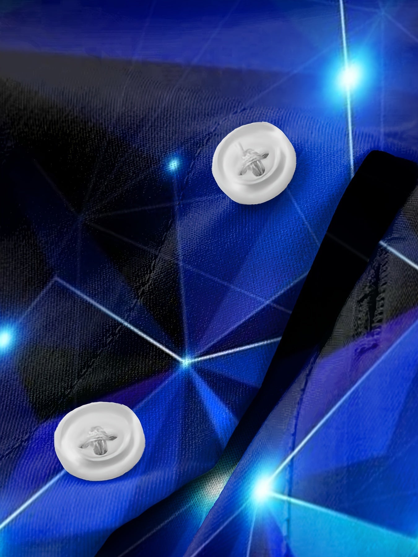 Men's Blue Starry Night Geometric Long Sleeve Shirt Polyester Casual Button-Up with Chest Pocket
