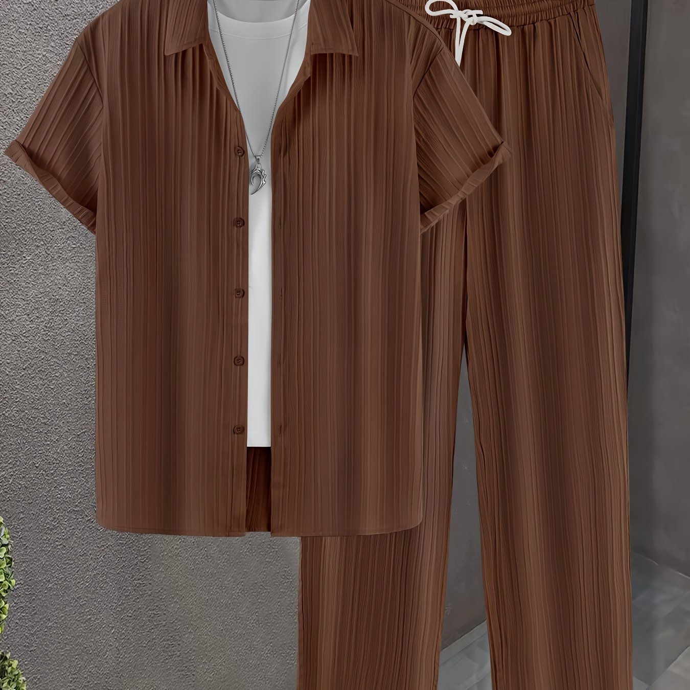 Men's Casual 2-Piece Set Short Sleeve Shirt and Drawstring Pants Polyester Summer