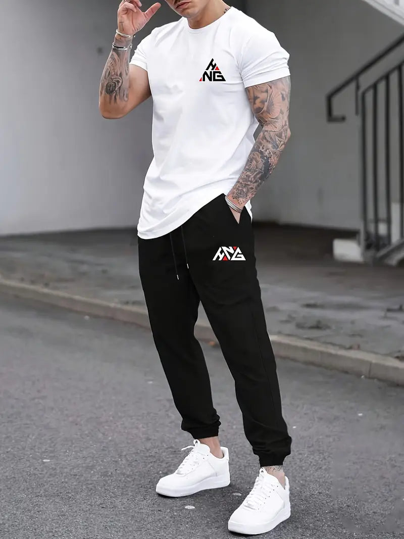 Men's Casual Summer T-Shirt and Joggers Set Polyester Stretchy Alphabet Print