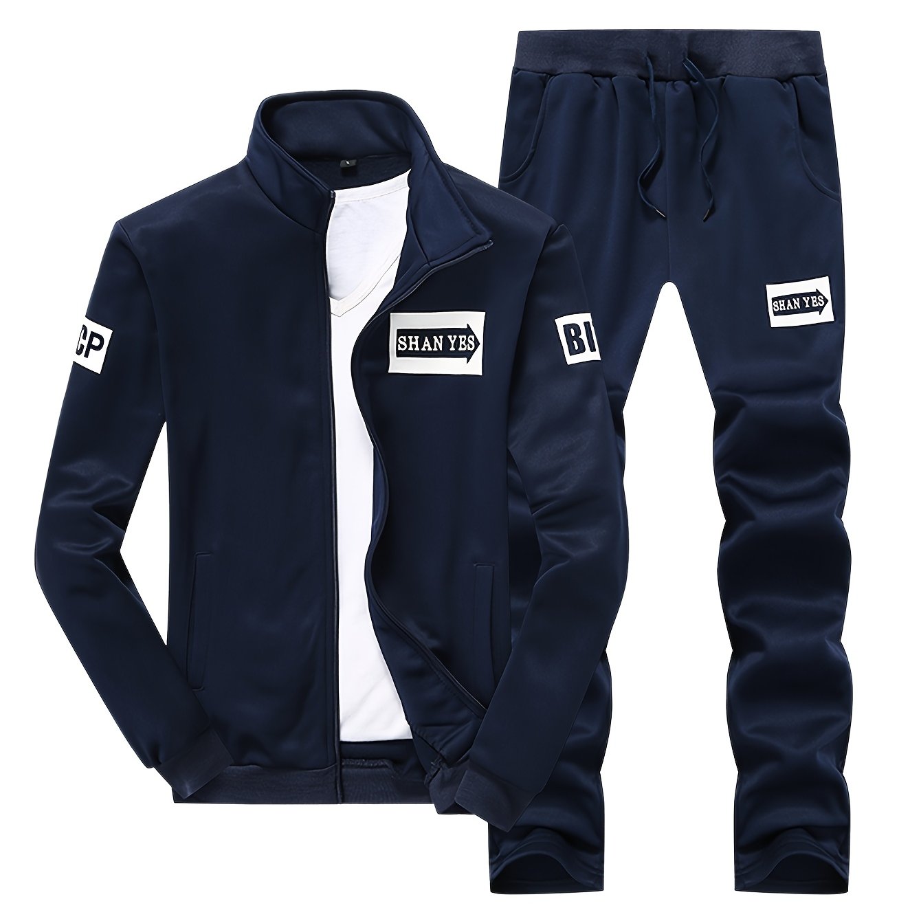 Men's Fleece Tracksuit Set with Pockets and "SPORT" Lettering in Black Polyester for Spring Fall