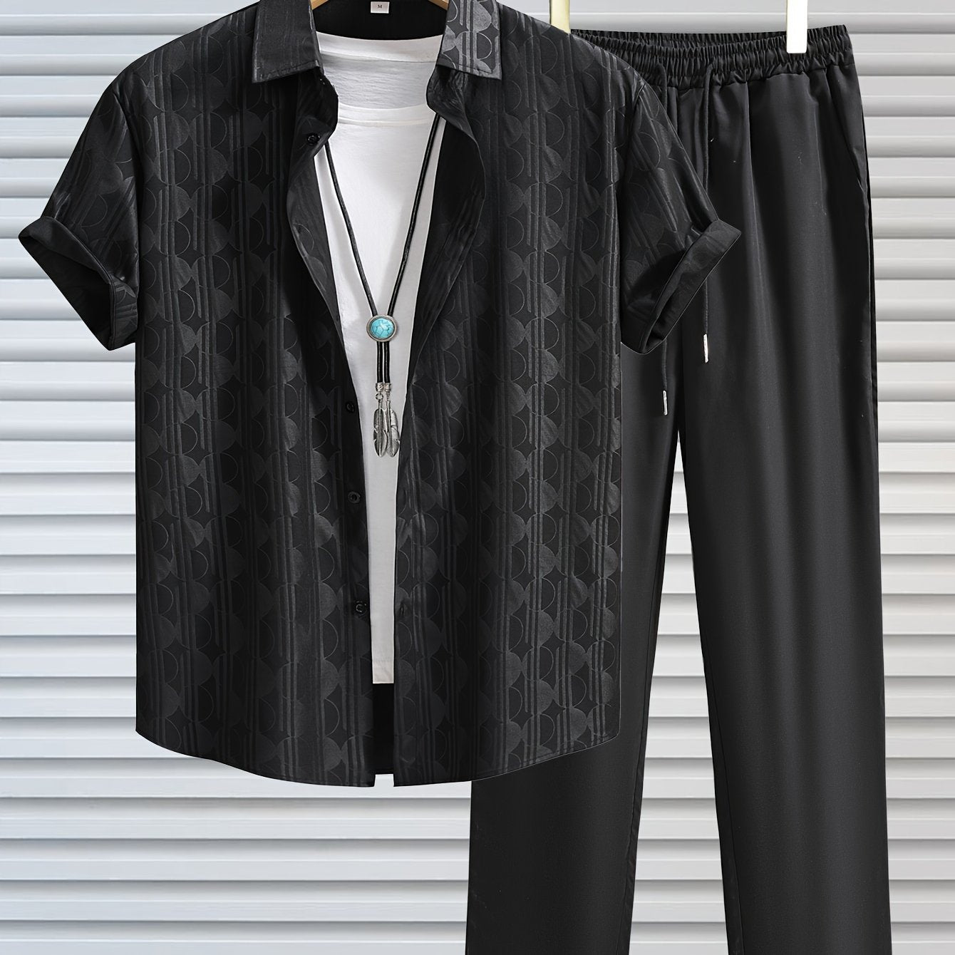 Men's Summer Casual Floral Print Outfit Short Sleeve Shirt and Drawstring Pants