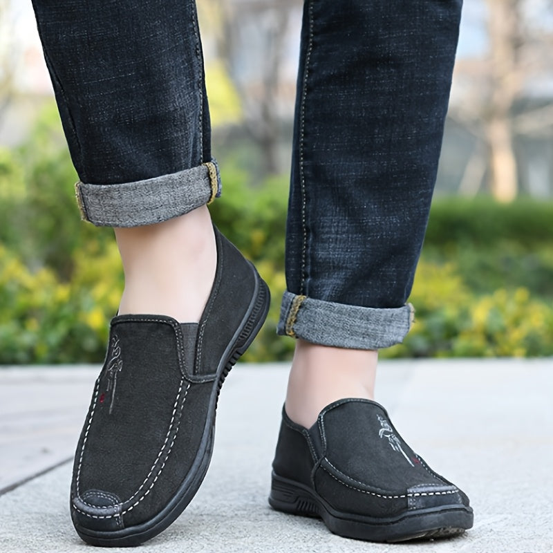 Men's Canvas Slip-On Shoes Low Top Breathable Casual Sneakers for All Seasons