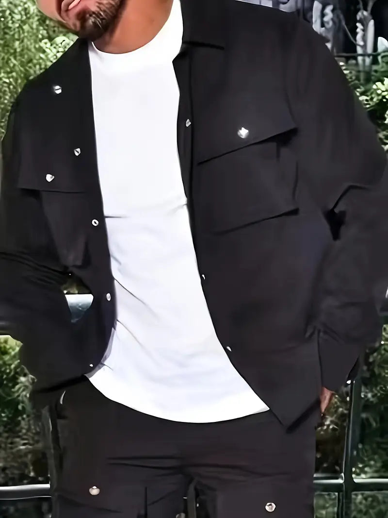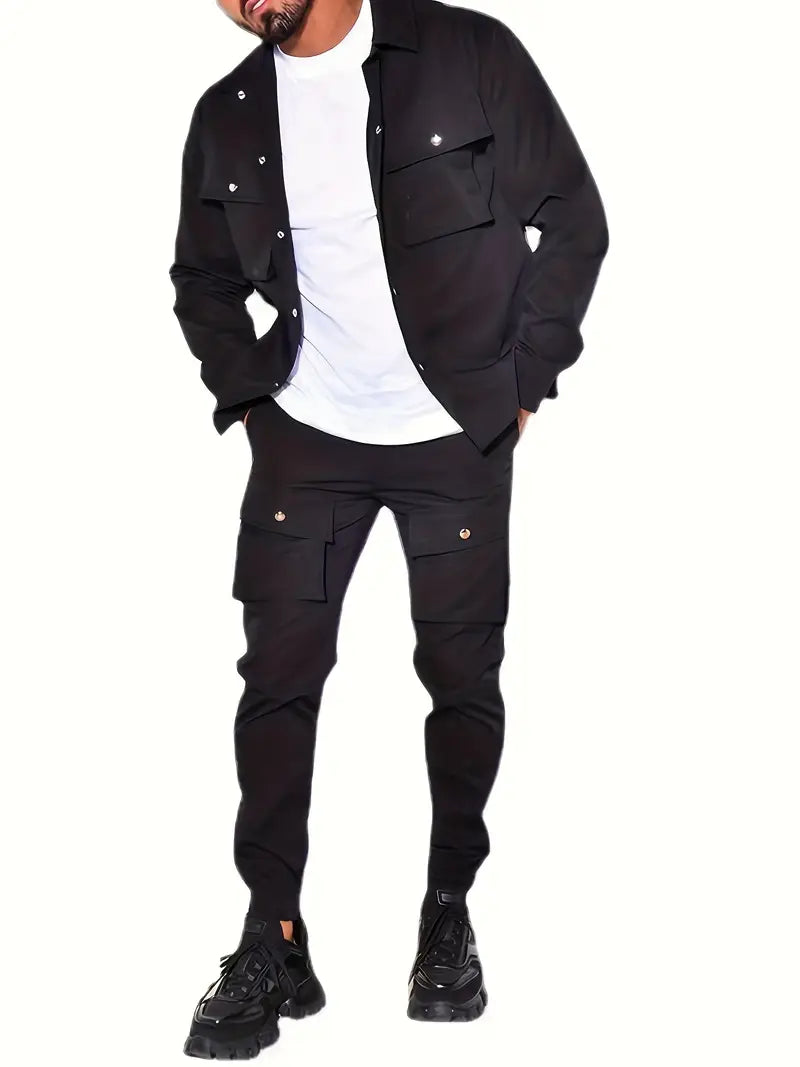 Men's Casual Outfit Set Solid Polyester Regular Fit with Pockets Machine Washable