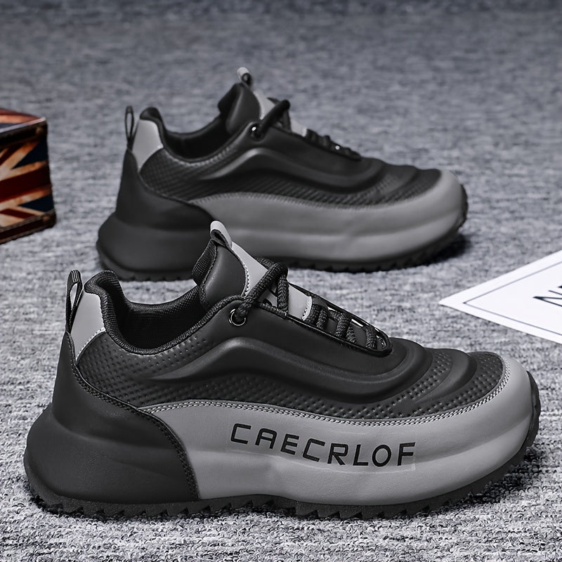 Men's Casual Sports Sneakers Low Top Solid Color Lace-Up Faux PU Fabric Insole Hiking Street Wear